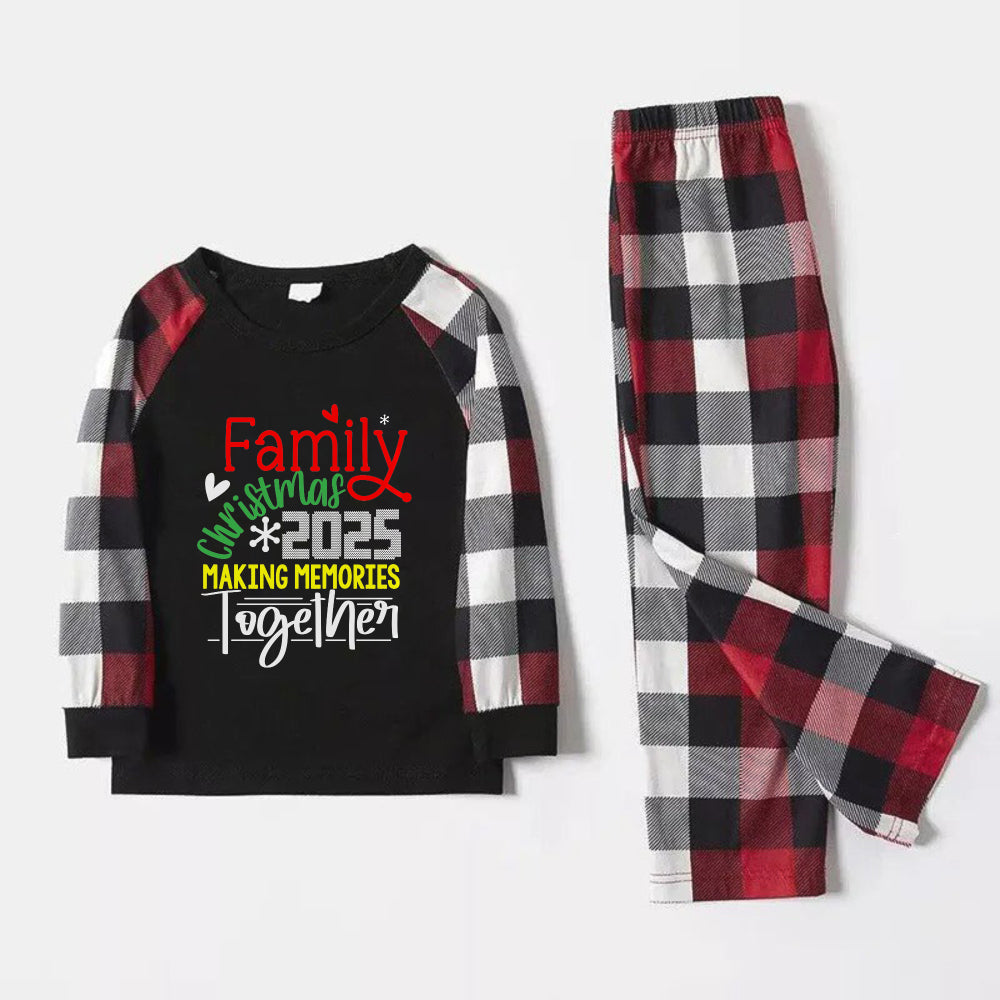 Christmas Family Matching Pajamas-Red and Gray Plaid Pjs set with "Family Christmas 2026 Making Memories Together" Colorful Slogan Print