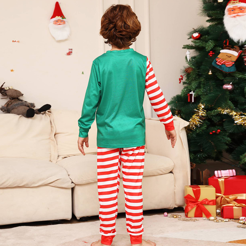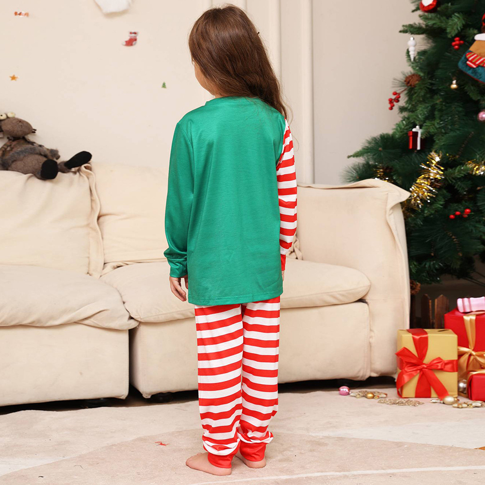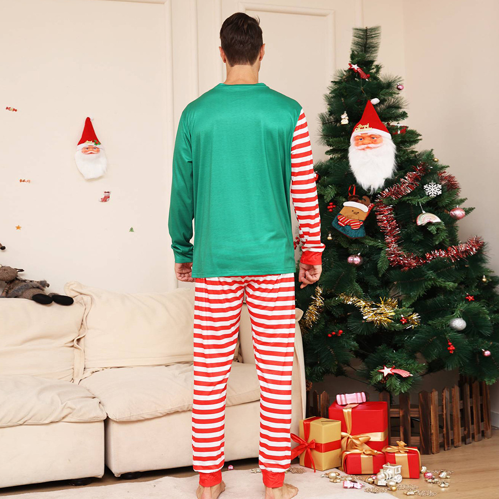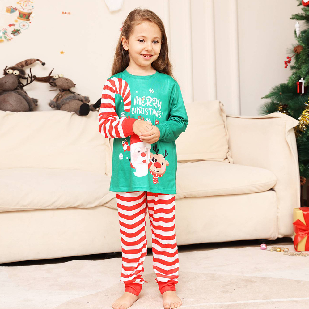Christmas Family Matching Pajamas Set Green Santa Claus Red Stripes Pajamas