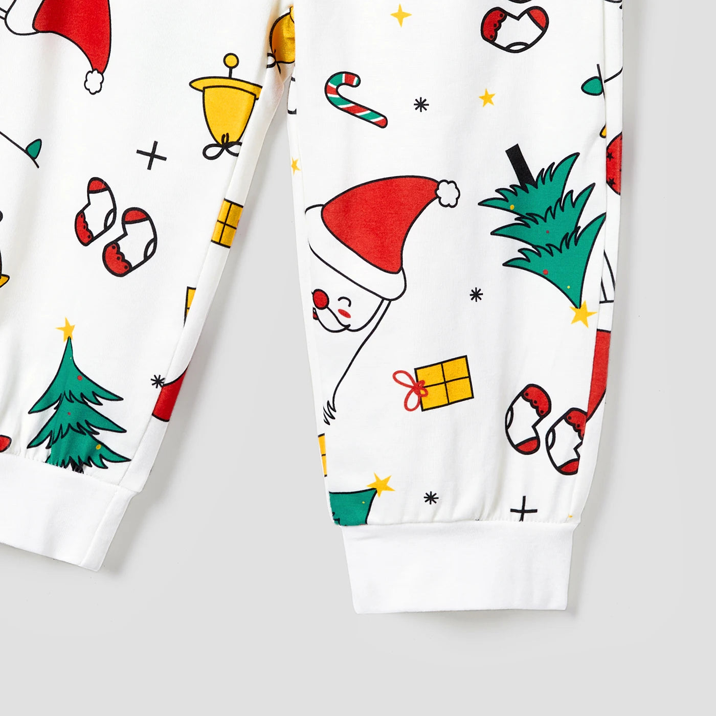 ⭐ Festive Christmas Prints: Adorned with classic holiday-themed graffiti featuring Santa Claus, Christmas trees, candy canes, and presents, these pajamas bring joyful Christmas vibes to your home.