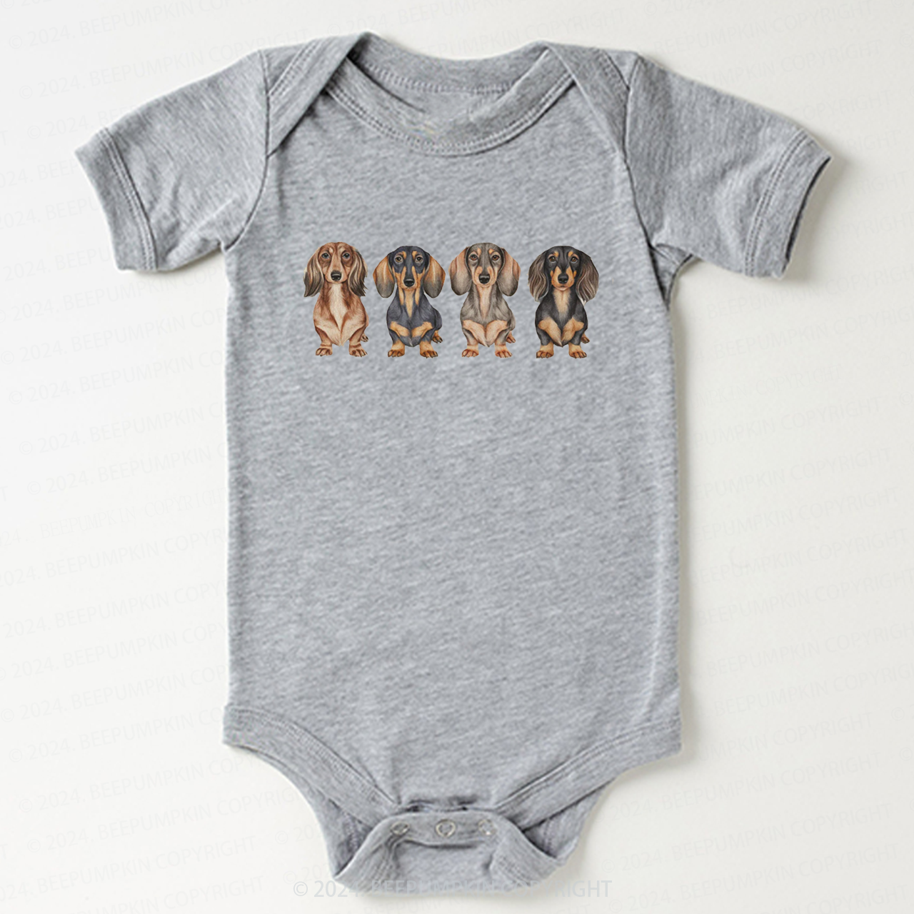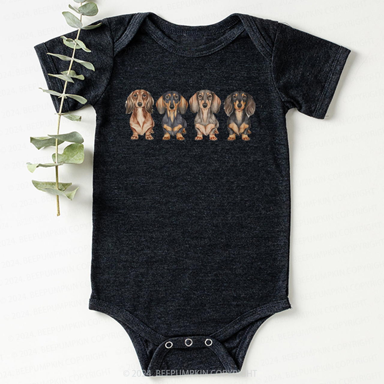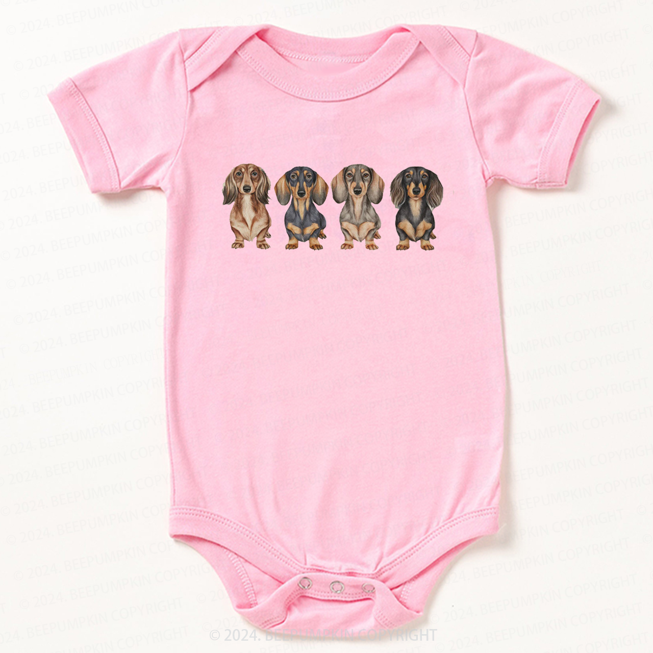 Cute Dachshund Puppies In A Row Bodysuit For Baby