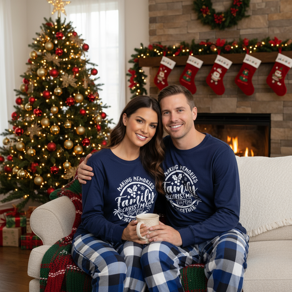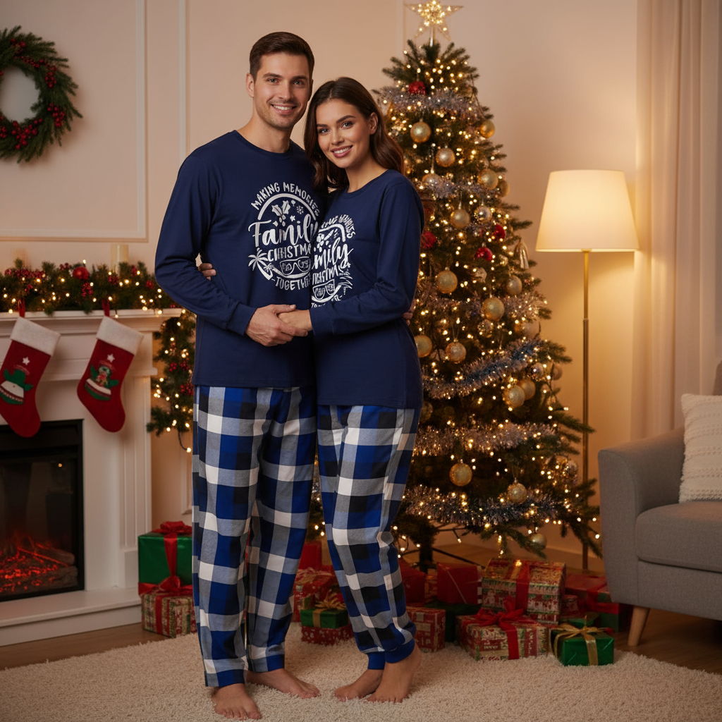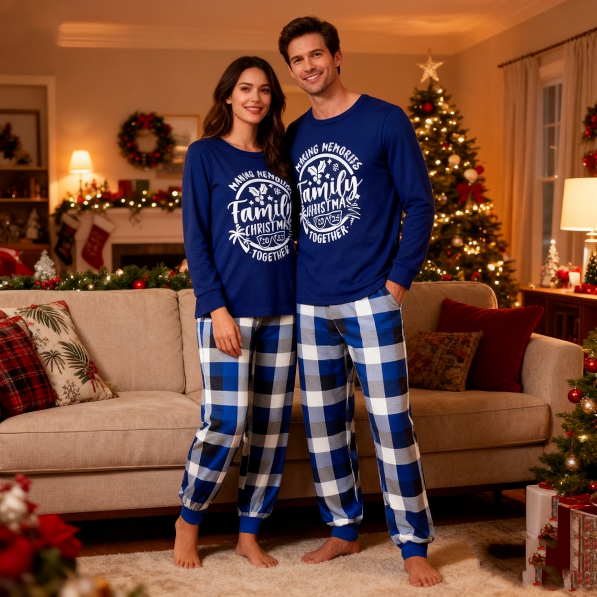 Christmas Couple Blue Plaid Pajamas With Make Memories Together 2026 Print