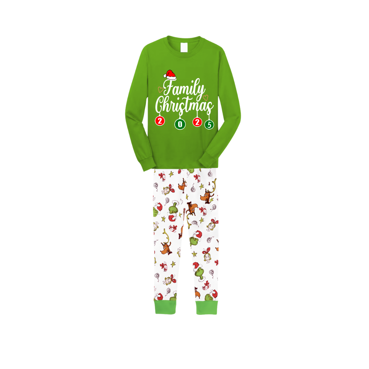Family Christmas 2026 Pajamas Set - Green Top / Cartoon Print Pants