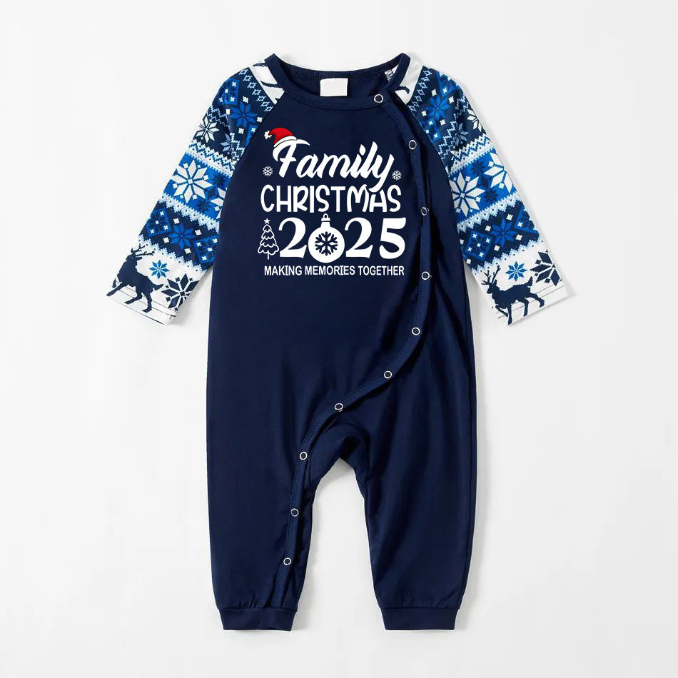 "Family Christmas 2026 " Text Print Blue Family Matching Pajamas