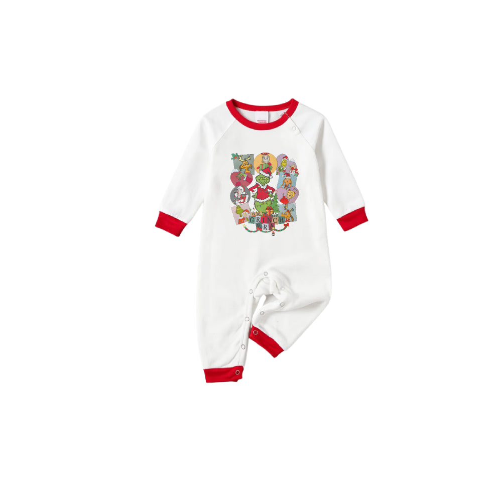 Family Christmas White Pajamas Set With Artistic Christmas Character Print
