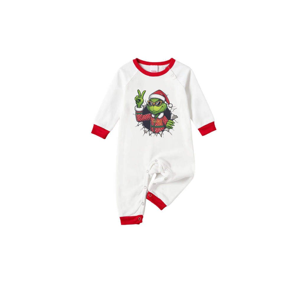 Family Christmas White Pajamas Set With Christmas Pattern Print