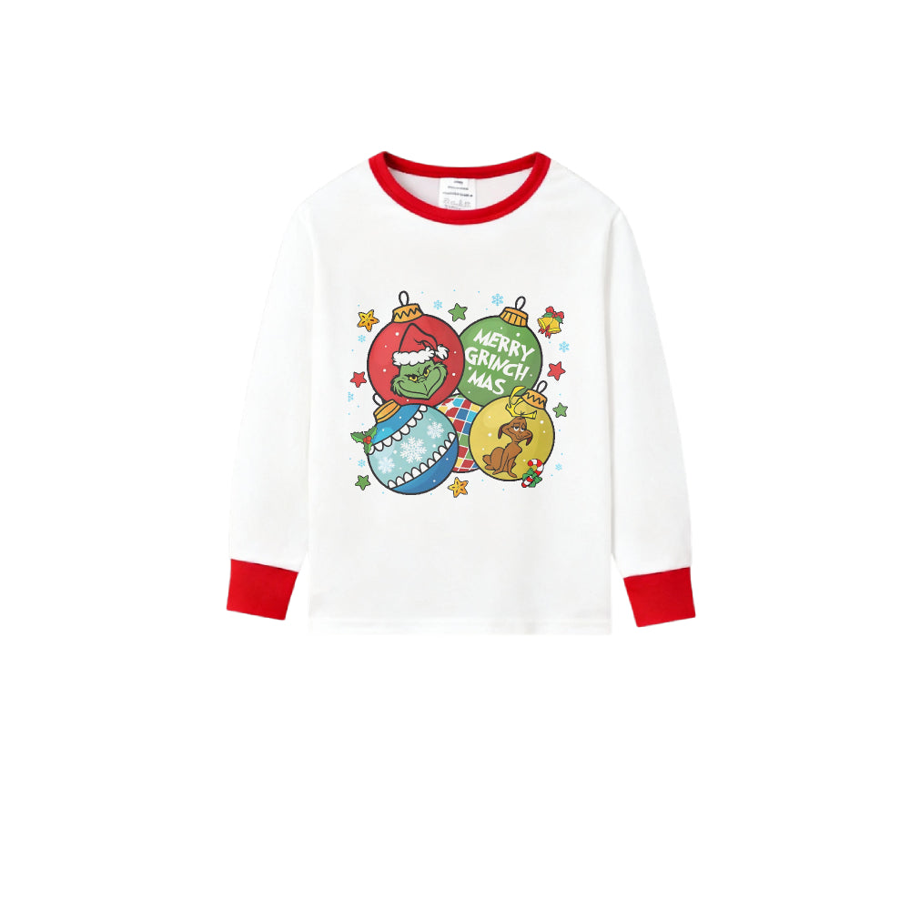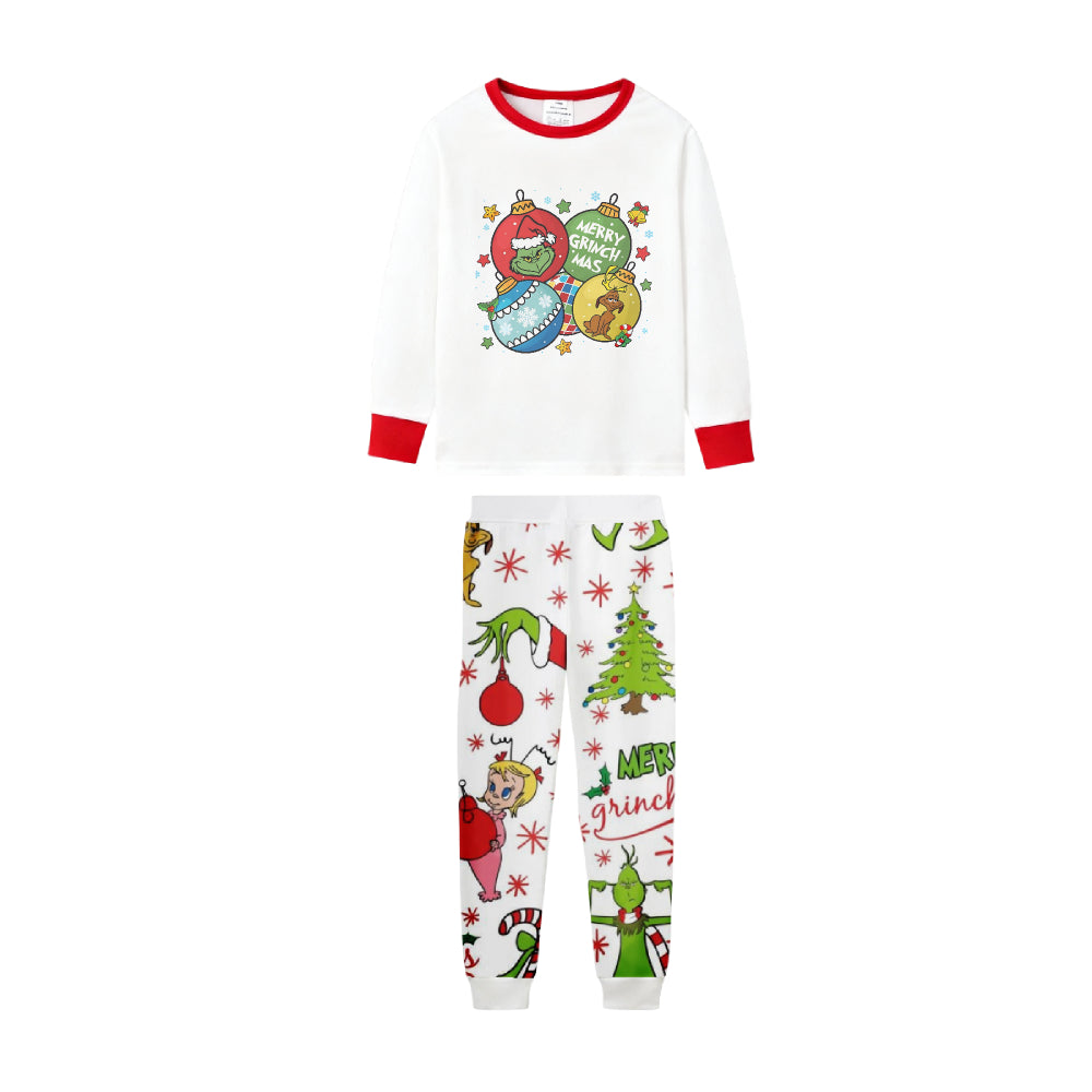 Family Christmas White Pajamas Set With Colorful Christmas Character Print