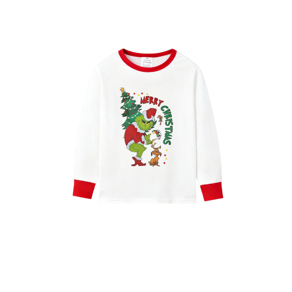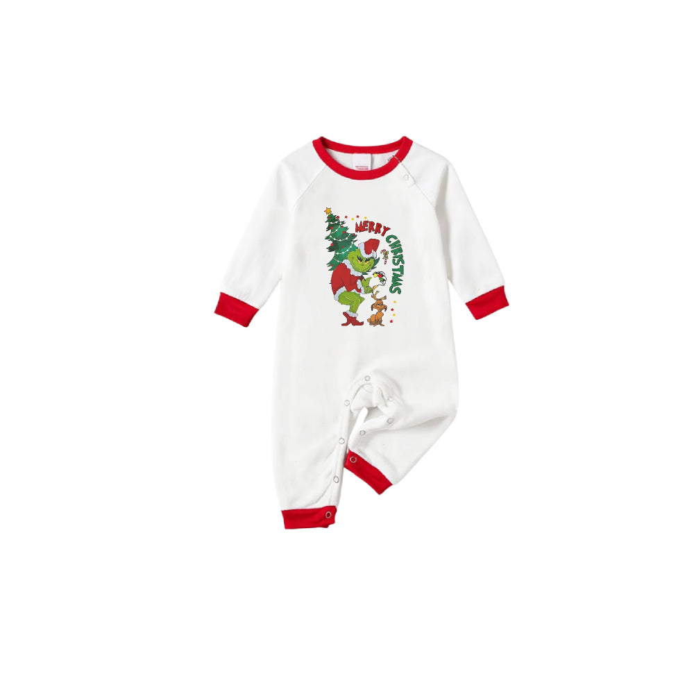 Family Christmas White Pajamas Set With Cute Xmas Pattern Print