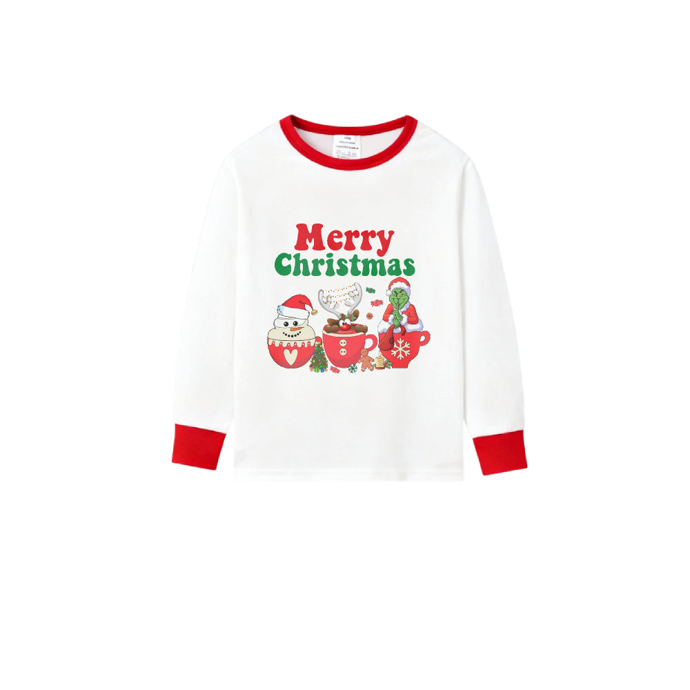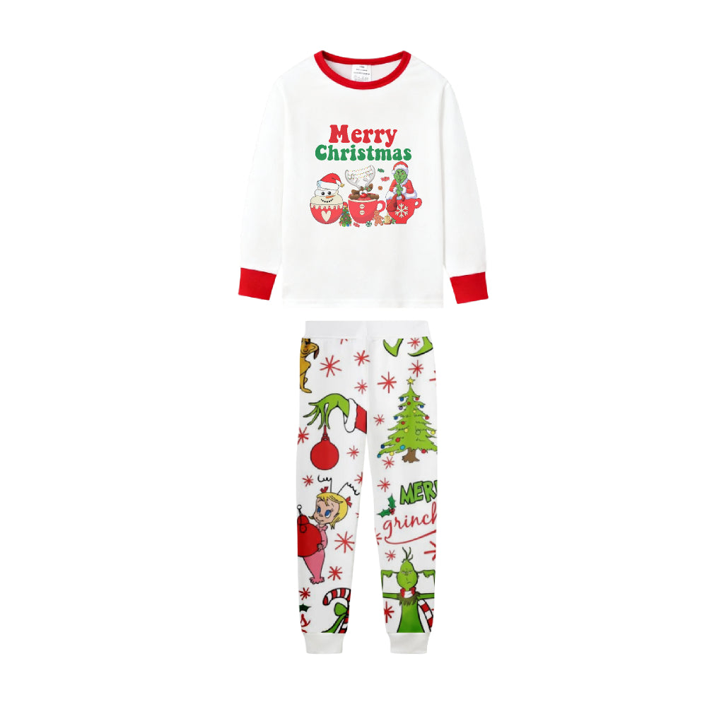 • Family Christmas White Pajamas Set With Merry Christmas & Classic Character Print