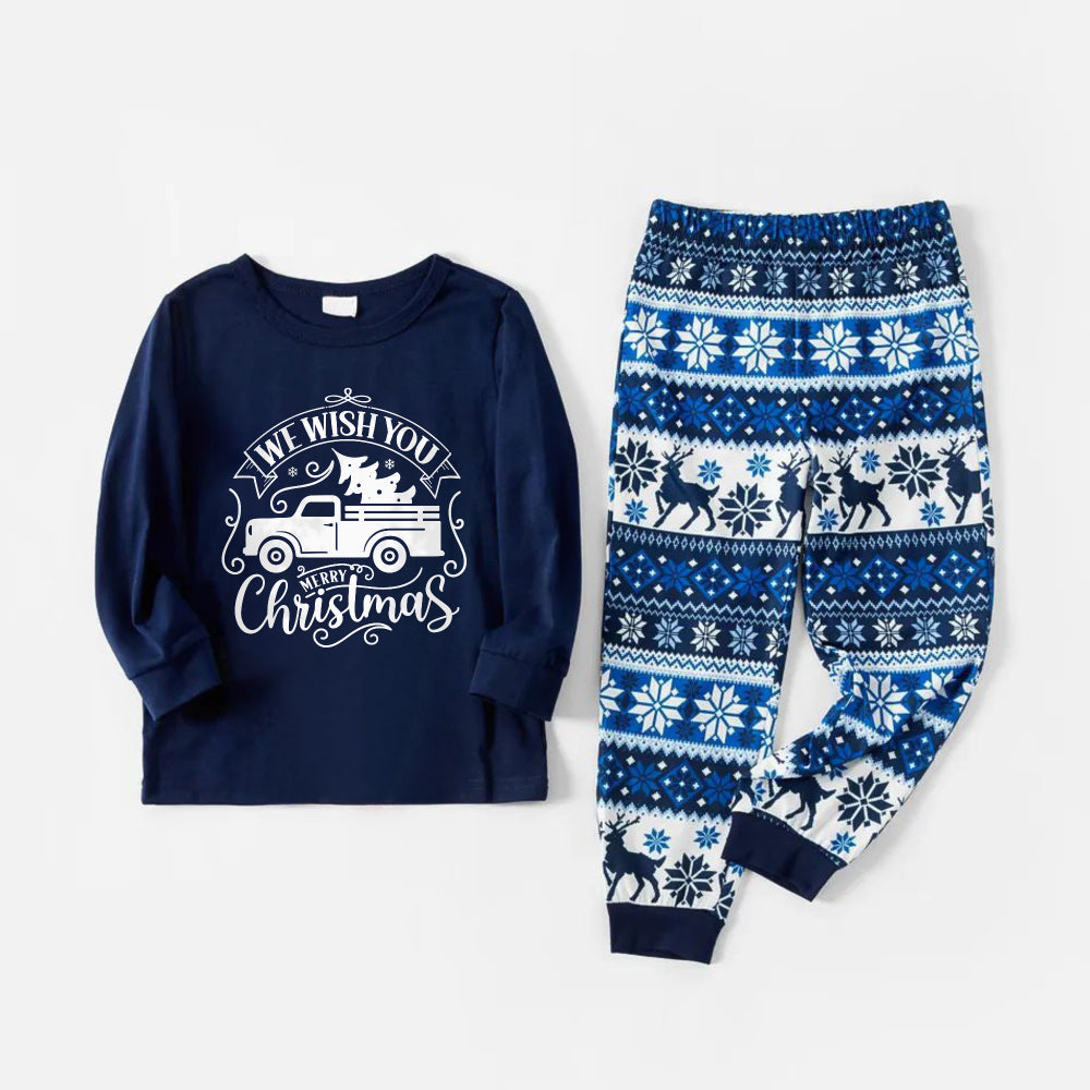 Joyful Blue Christmas Pajamas Set With Christmas Tree and Car Print