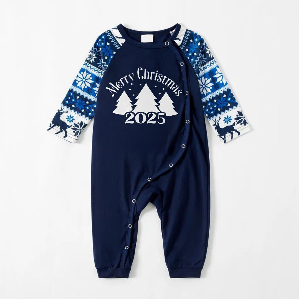 Joyful Blue Christmas Pajamas Set with Christmas Tree and Slogan Designs