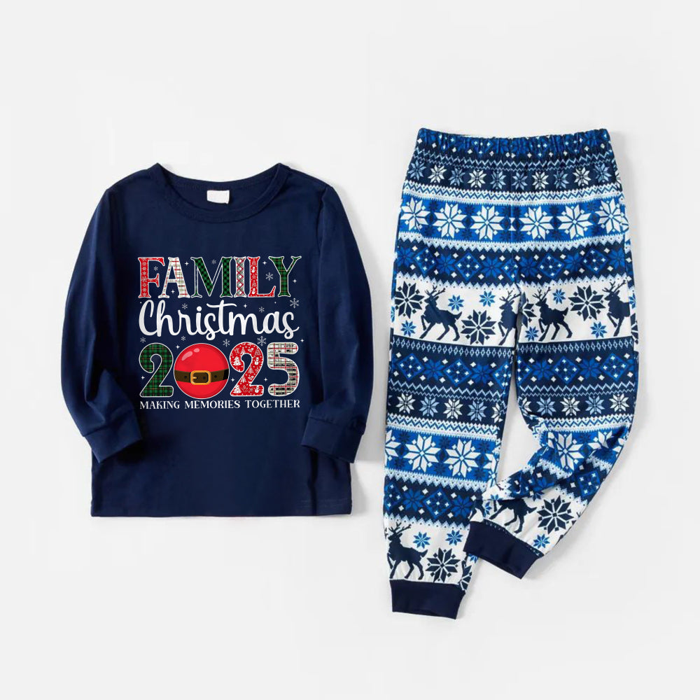 Joyful Blue Christmas Pajamas Set With "Family Christmas 2026" Holiday Quotes