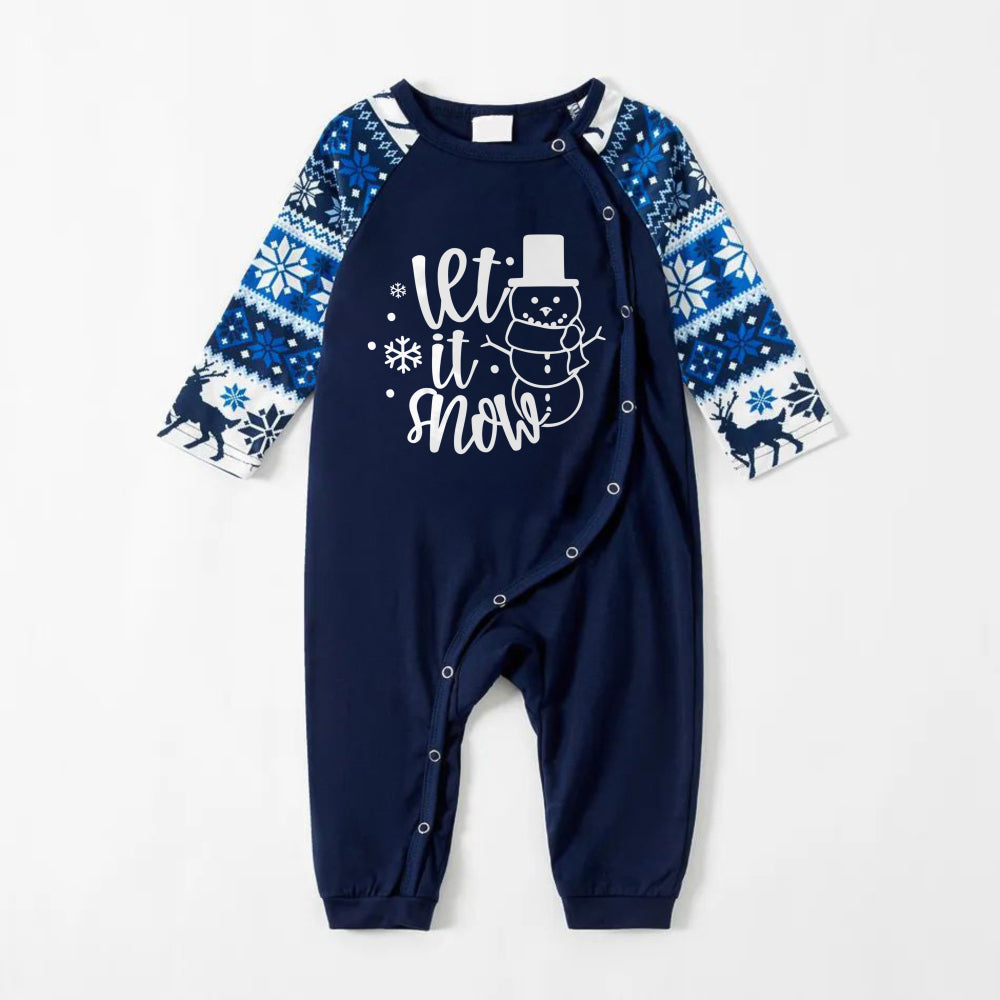 Joyful Blue Christmas Pajamas Set with Snowman and Slogan Designs