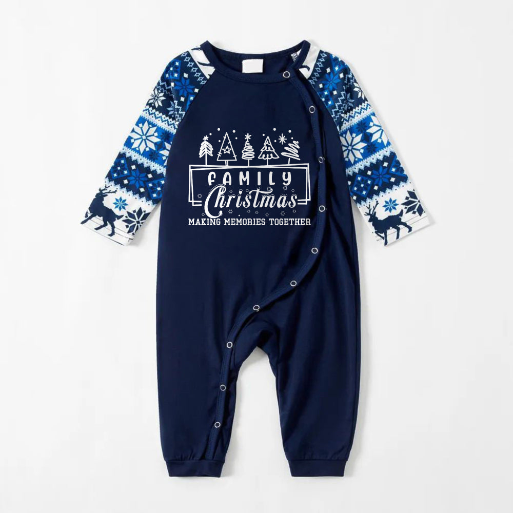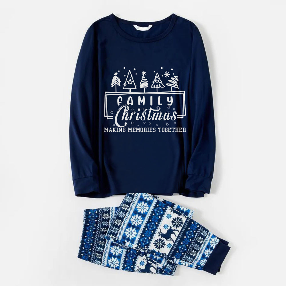 Joyful Blue Christmas Pajamas Set with Tree and Holiday Text Design