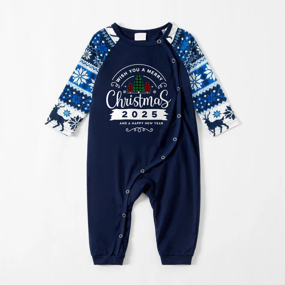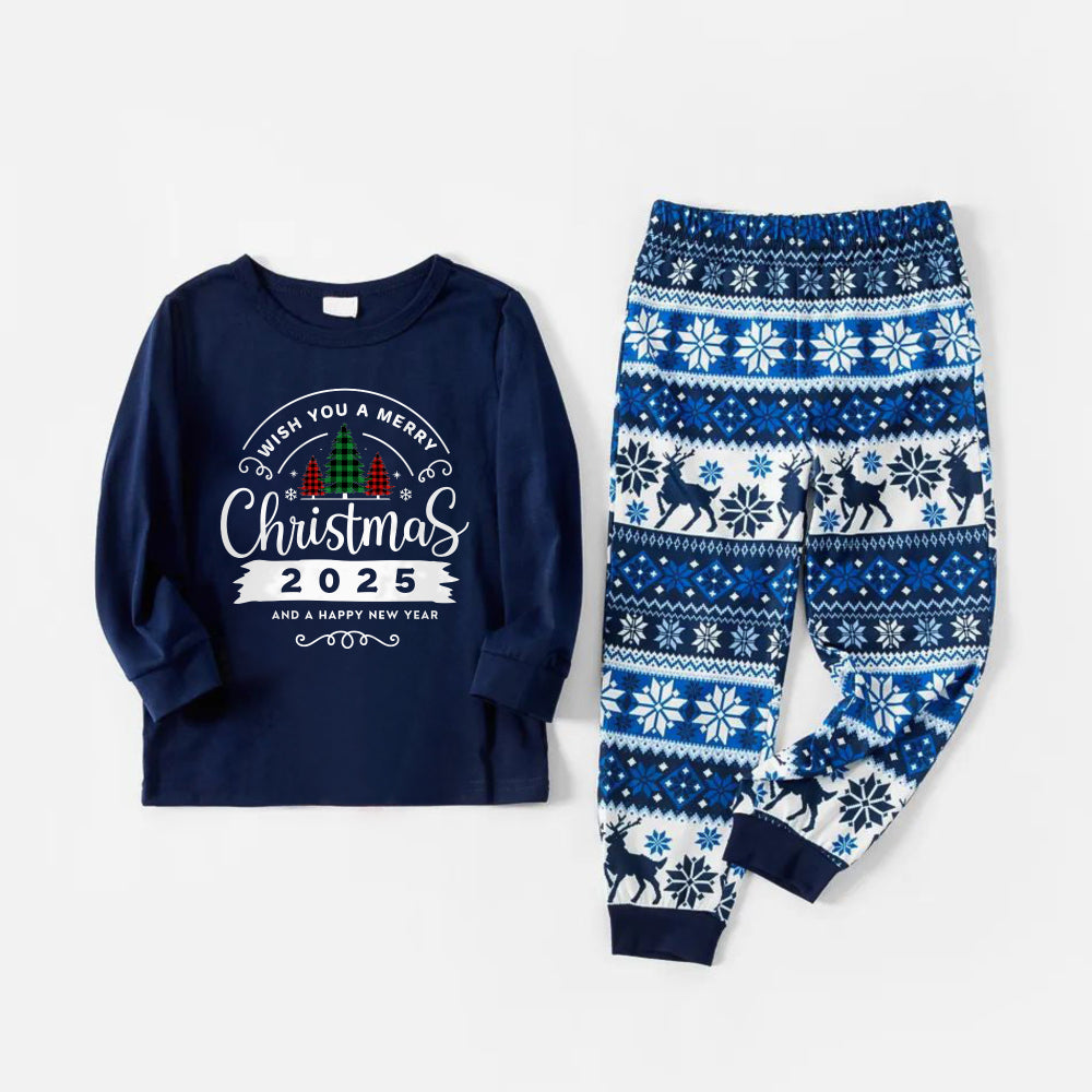 • Joyful Blue Christmas Pajamas Set With With "Wish You A Merry Christmas 2026 and Happy New Year" Print