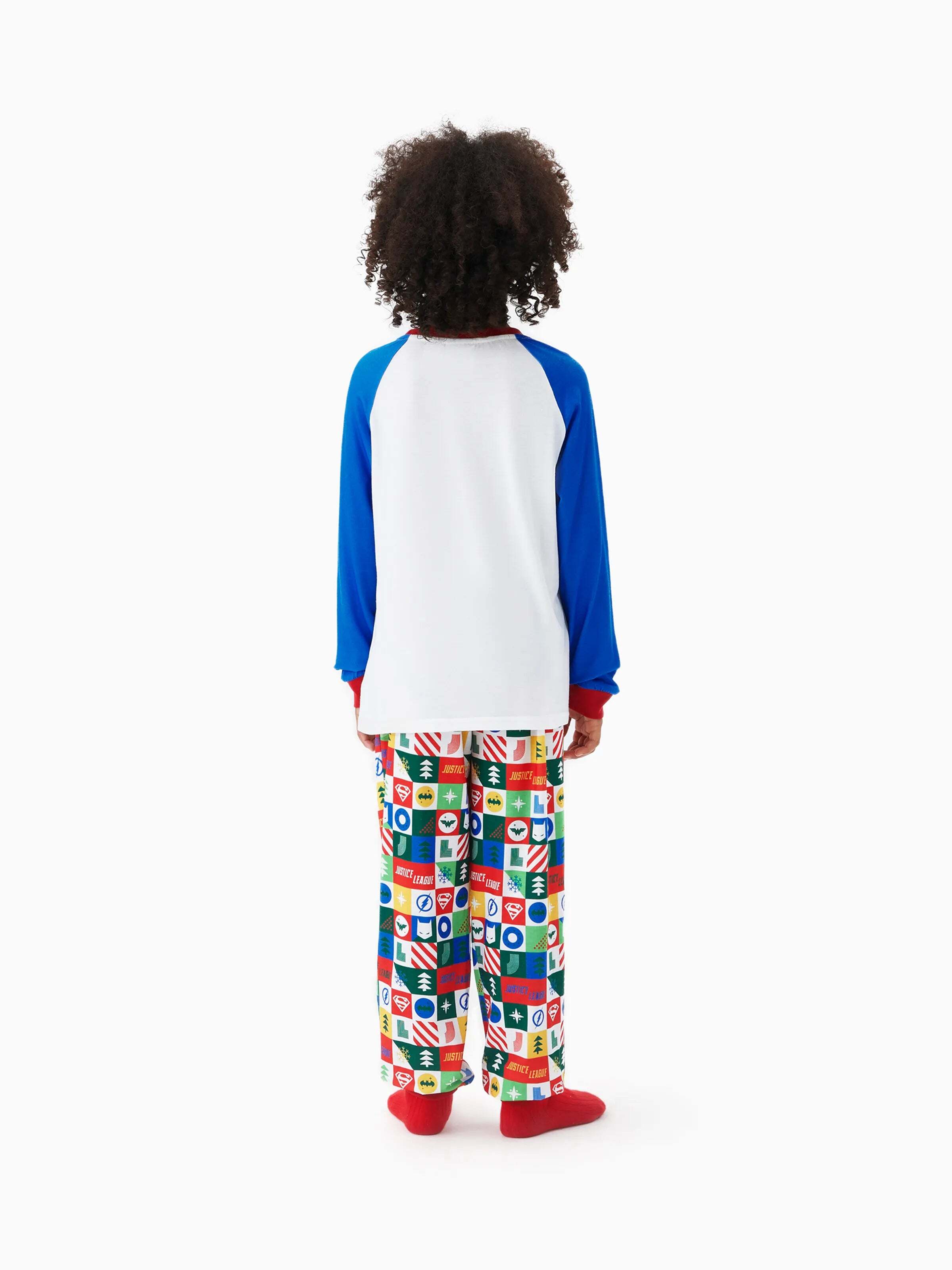 • Product features: Flame-resistant for safety, soft knit fabric, Justice League character graphics, and colorful flag-patterned pants.