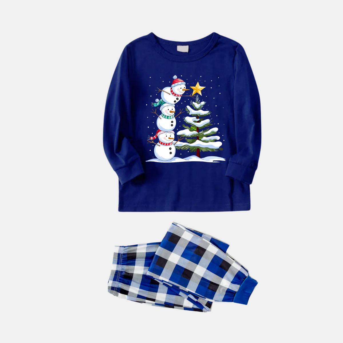 Couple Blue Plaid Pajamas Set with Snowman & Christmas Tree Print