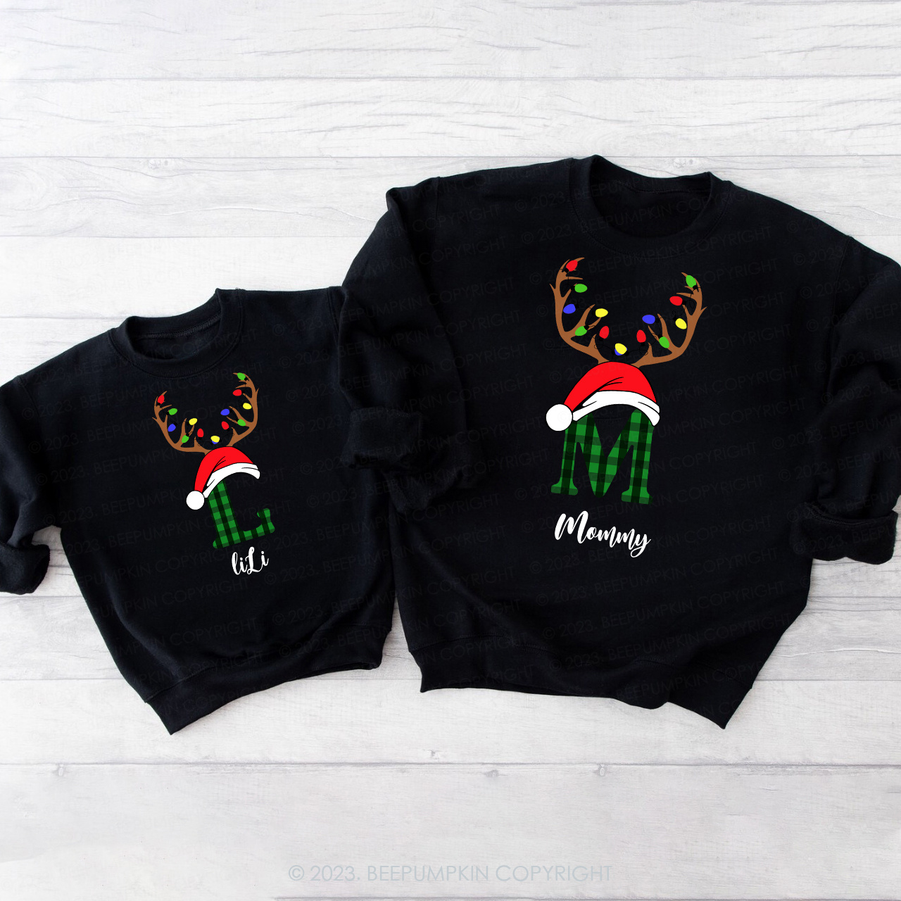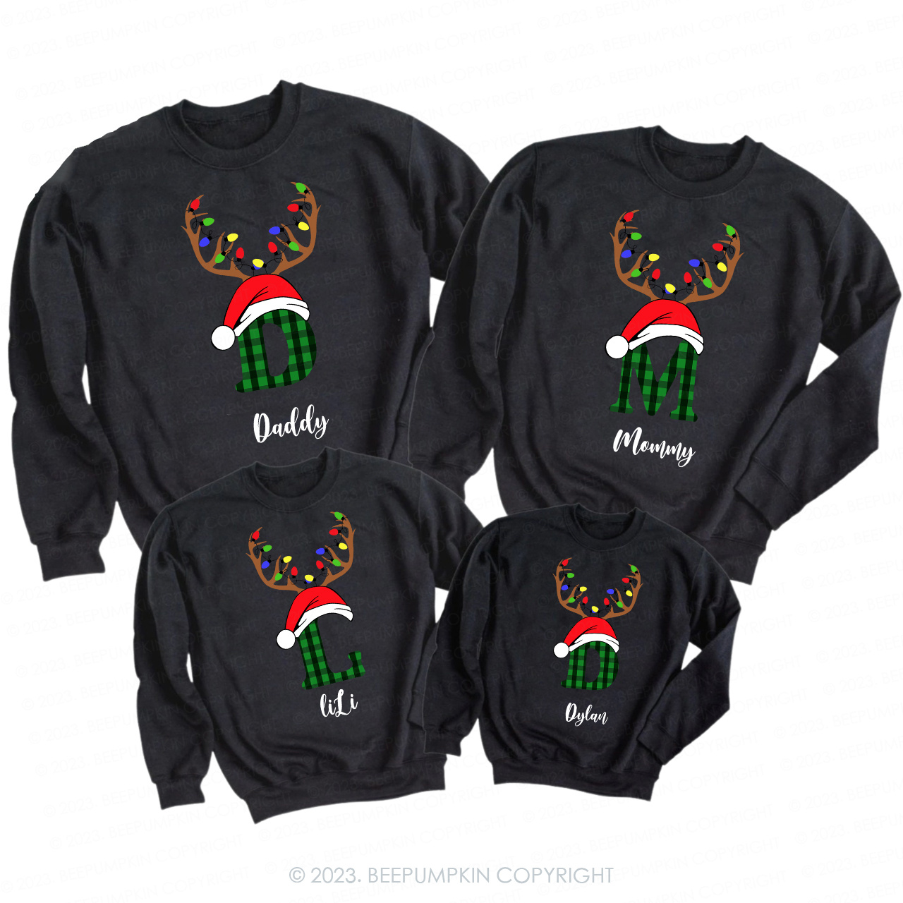 Personalized Antlers Hat Monogrammed Family Christmas Sweatshirts