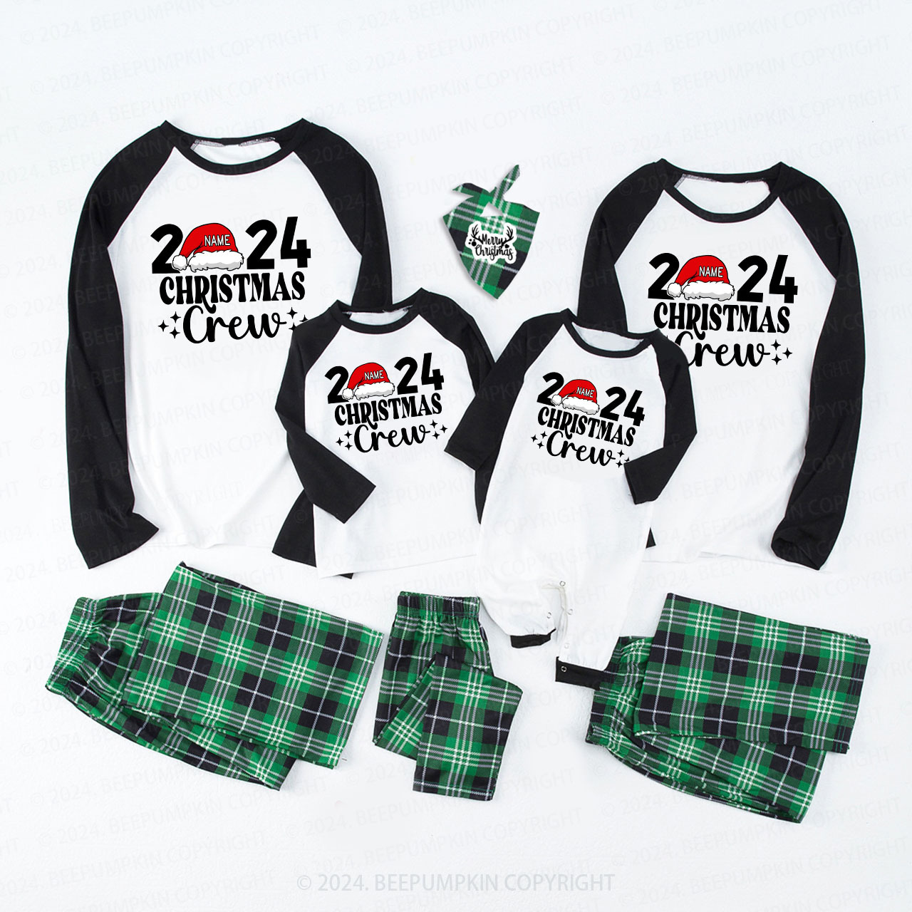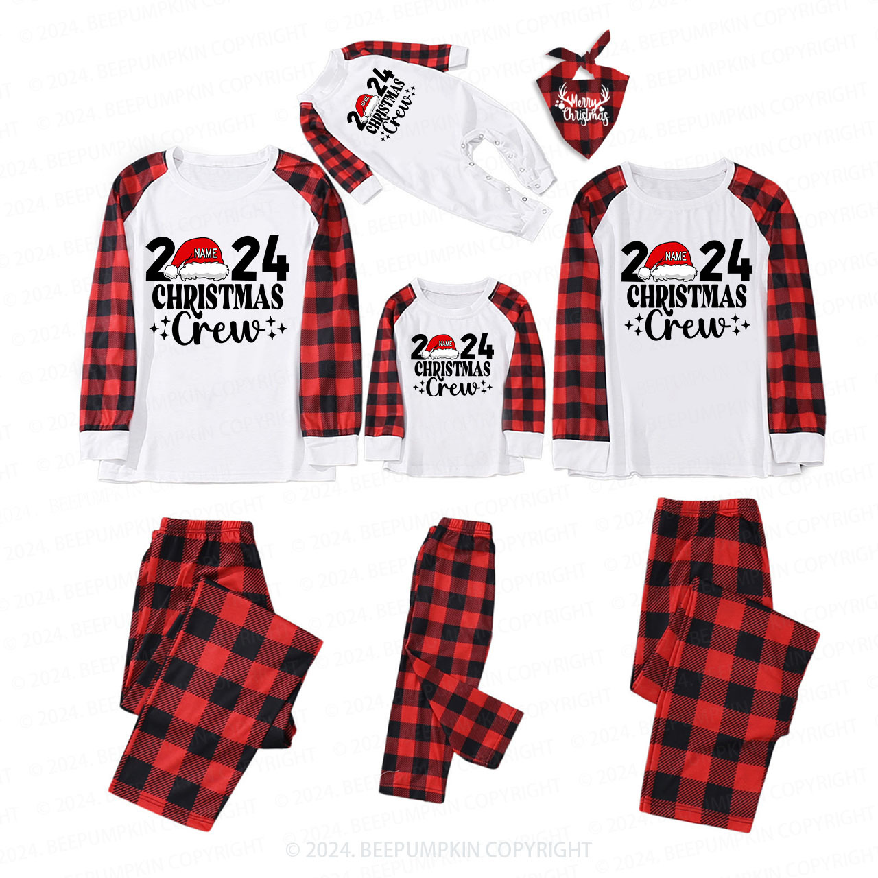 Personalized Christmas Crew 2024 Name On Santa Hat Pajamas