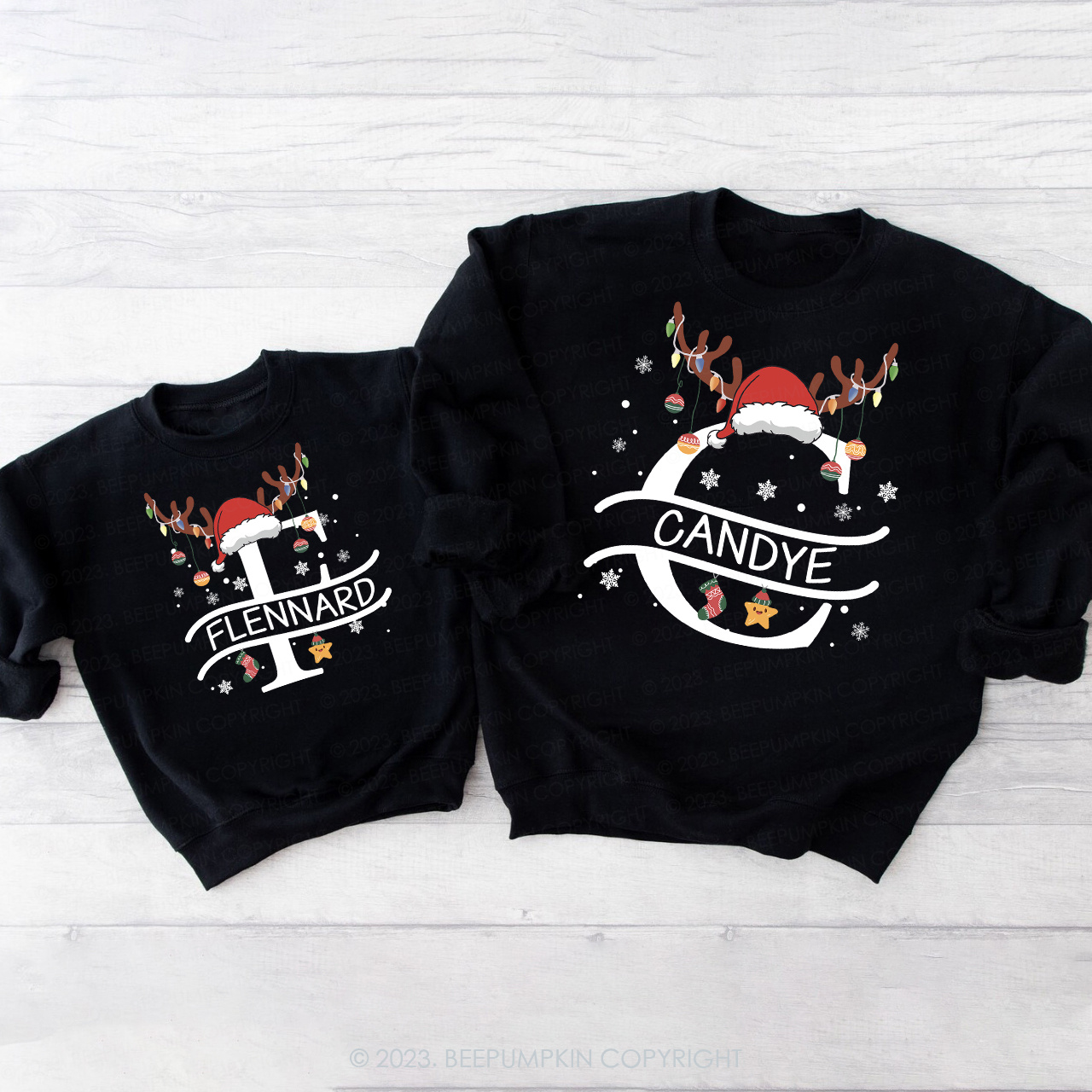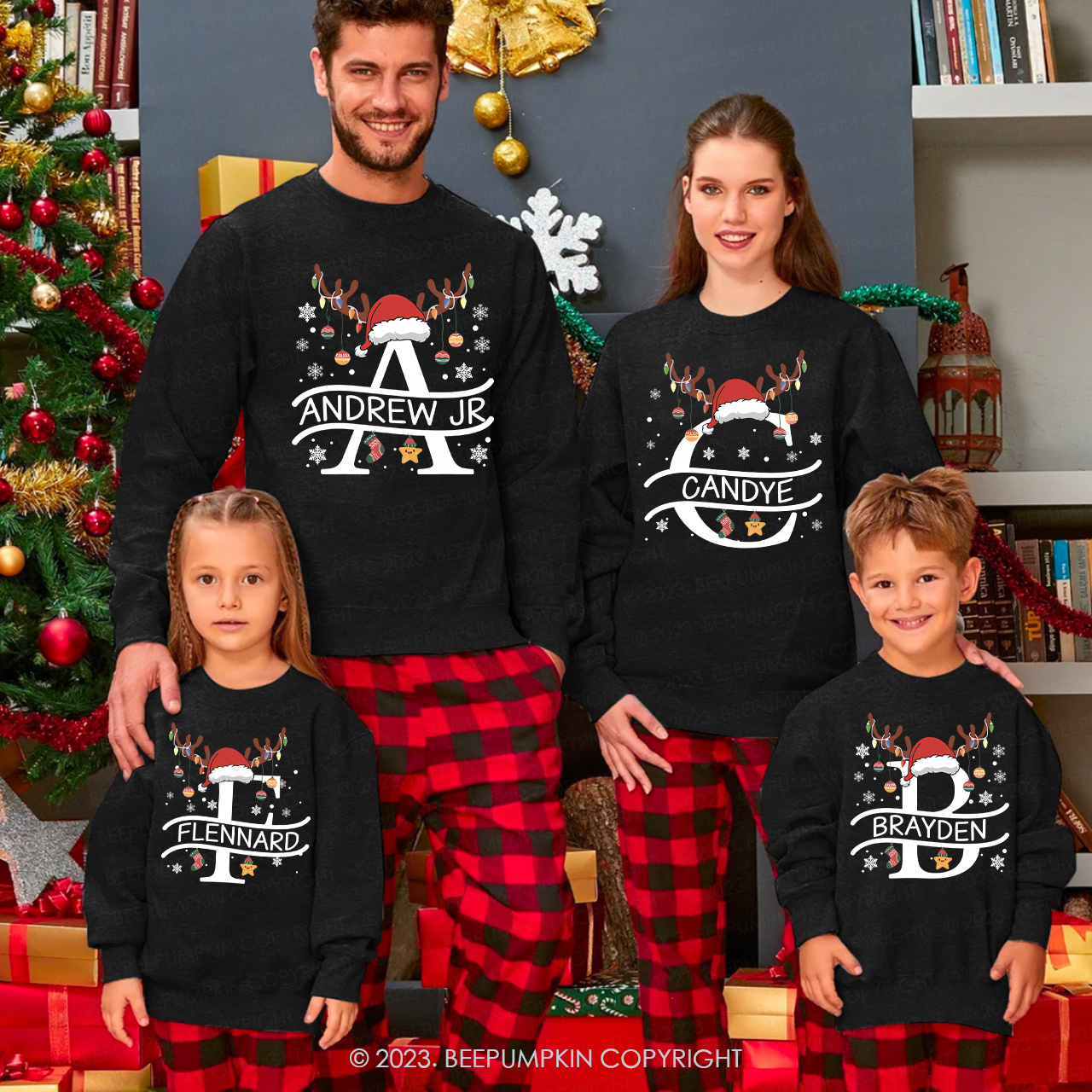 Personalized Christmas Elk Family Matching Shirts Sweatshirts