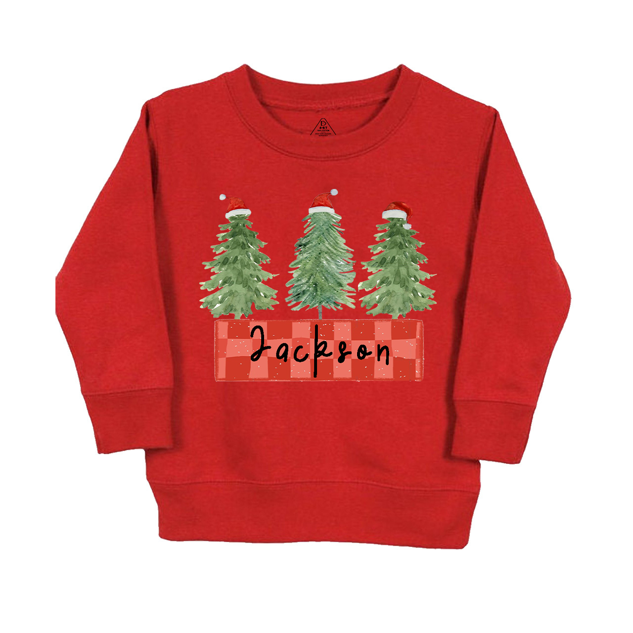 Personalized Red Kid Name Christmas Tree Kids Sweatshirt Beepumpkin