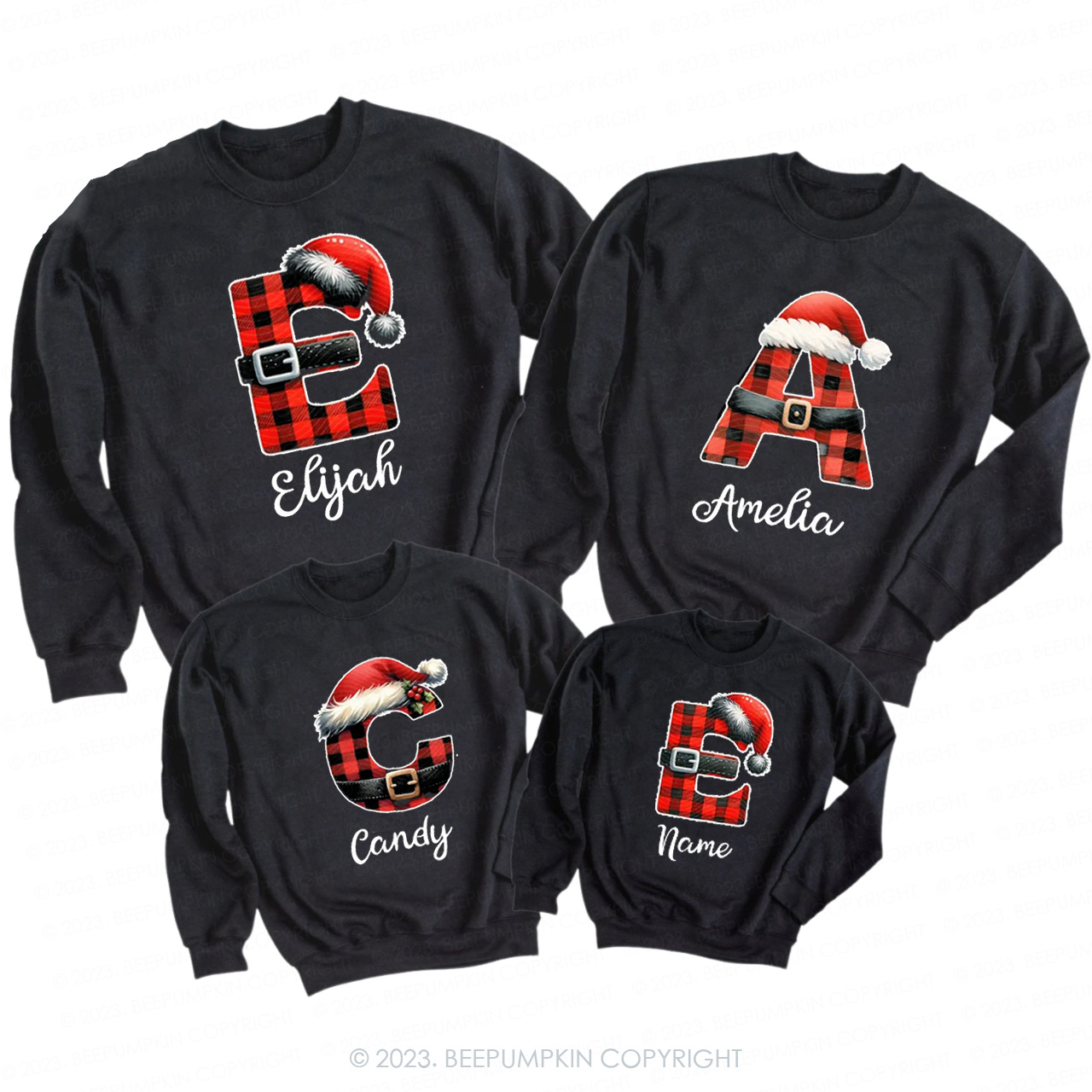 Personalized Reindeer Santa Claus Christmas Plaid Letters Sweatshirts