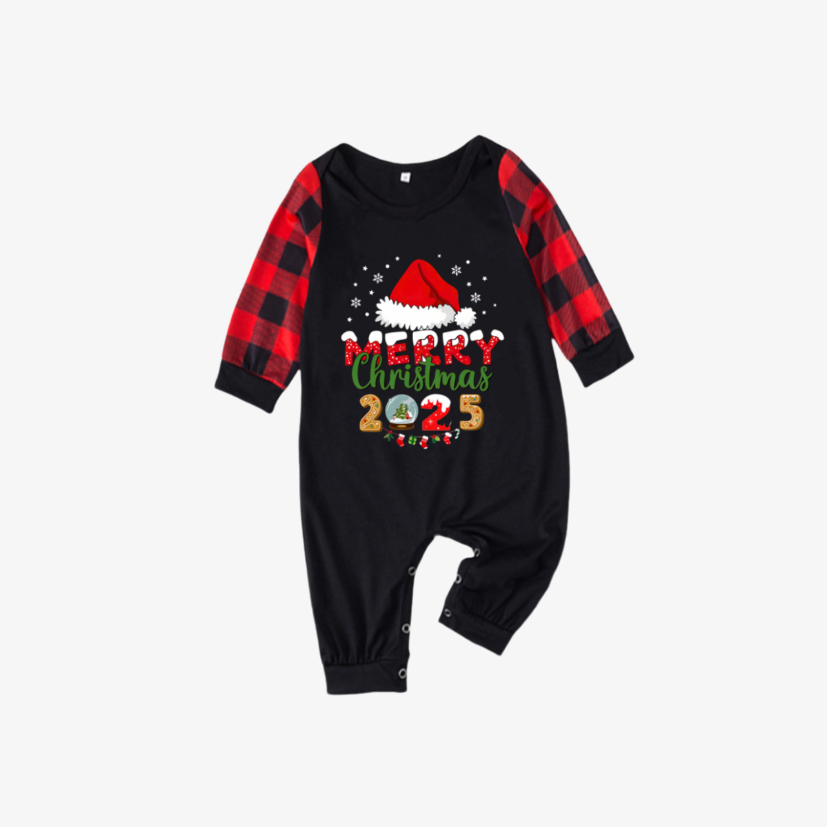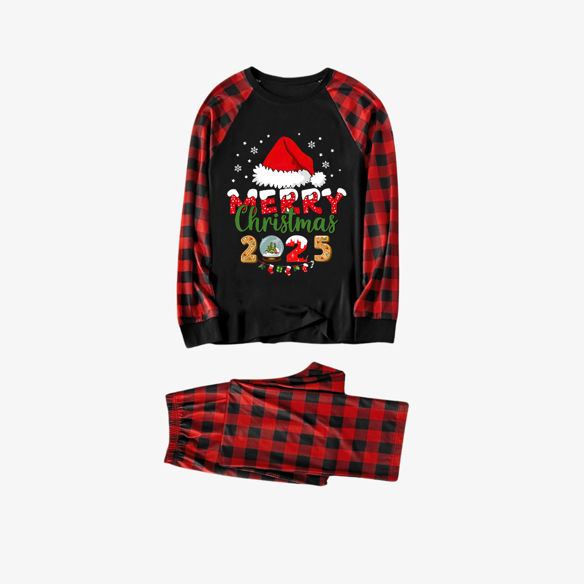 • Red and Black Plaid Christmas Pajamas Set With Santa Hat and "Merry Christmas 2026" Text Print