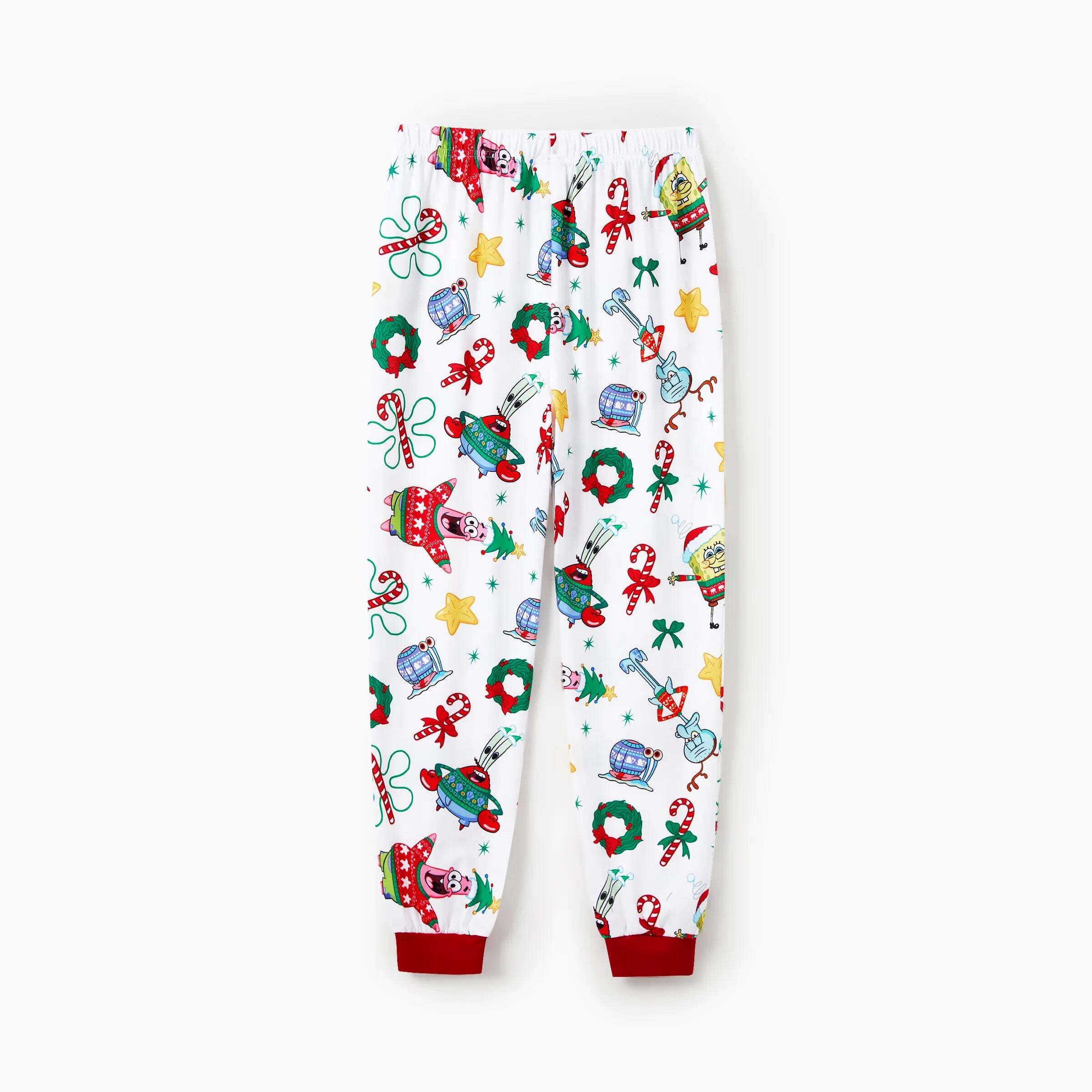 This SpongeBob SquarePants™ Christmas pajama set features a festive "We Wish You a Krabby Christmas" graphic. The red and white color-block design, along with holiday-themed patterned pants, make it perfect for family moments and holiday photos. Available for adults, kids, and babies.