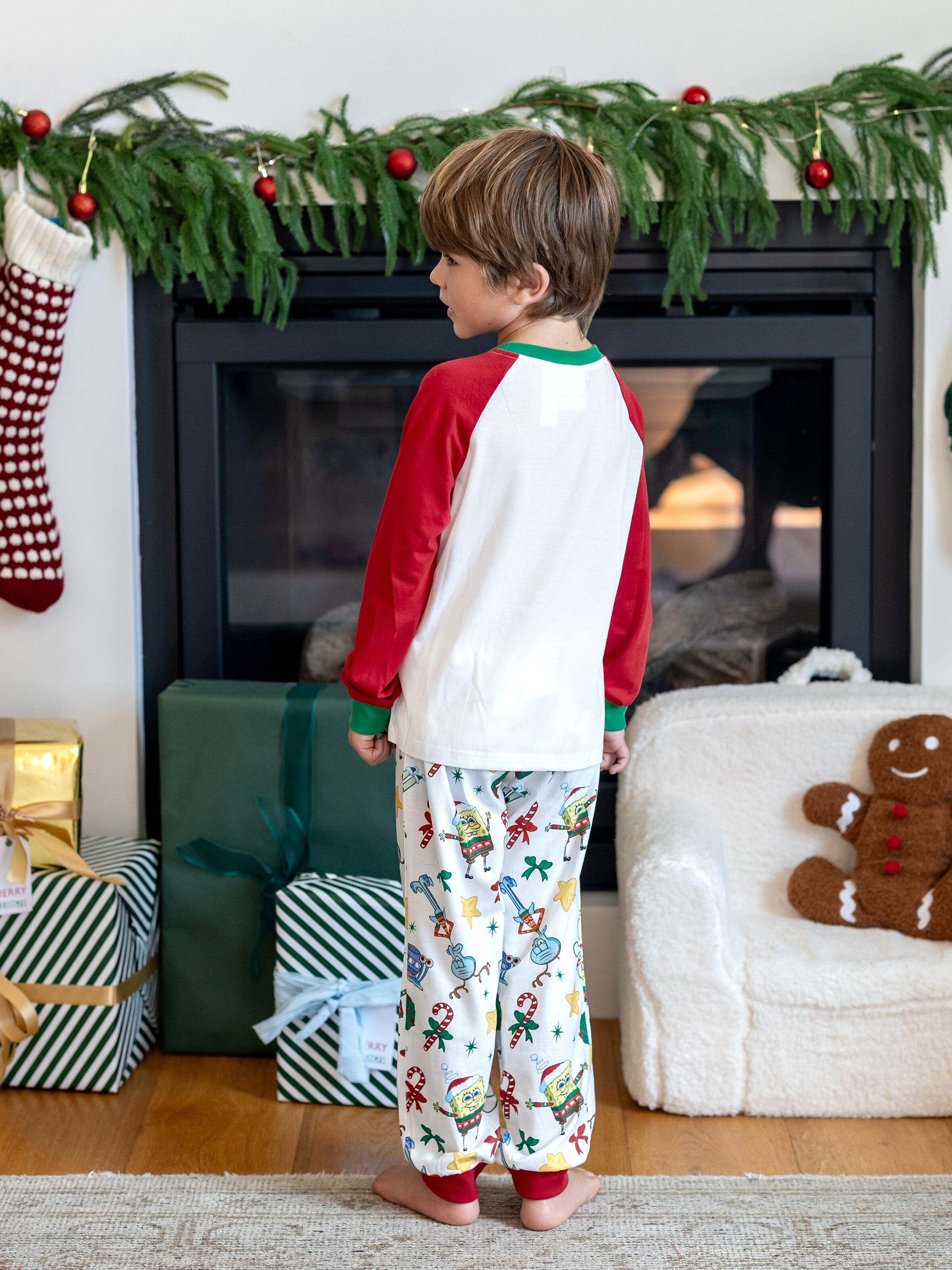• Product features: Flame-resistant for safety, soft knit fabric, red and white color-block design with "We Wish You a Krabby Christmas" graphic and holiday-themed pants.