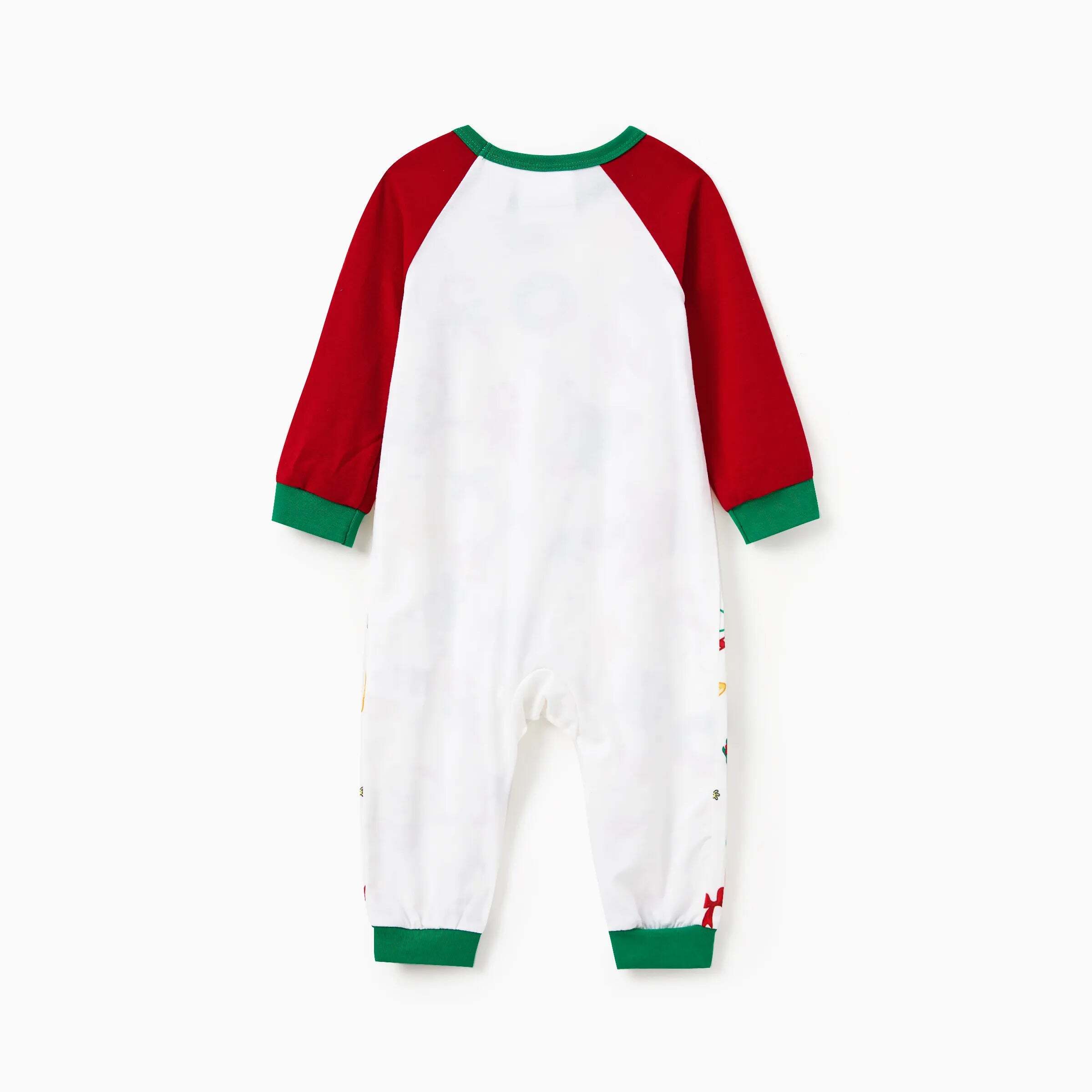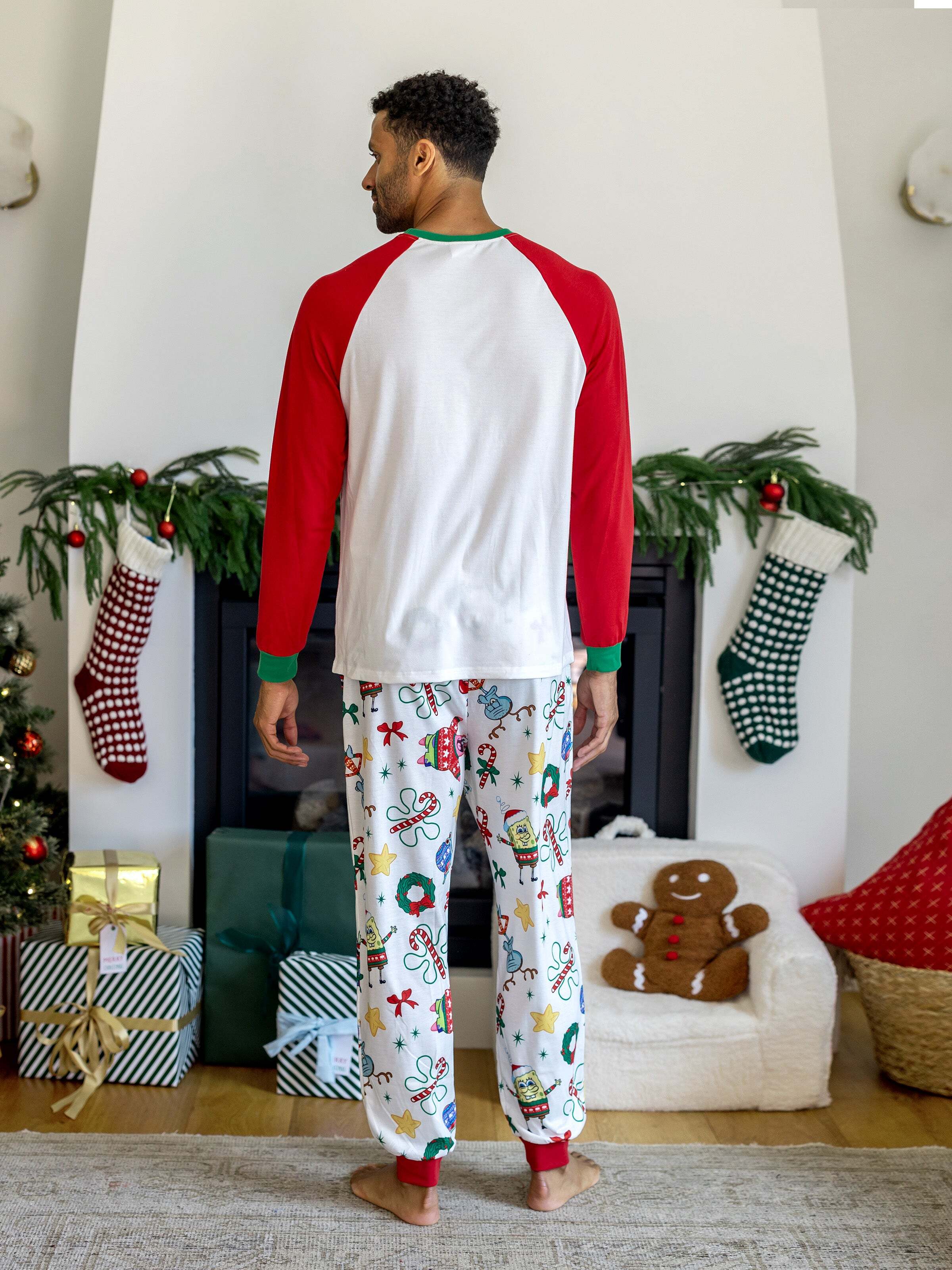This SpongeBob SquarePants™ Christmas pajama set features a festive "We Wish You a Krabby Christmas" graphic. The red and white color-block design, along with holiday-themed patterned pants, make it perfect for family moments and holiday photos. Available for adults, kids, and babies.