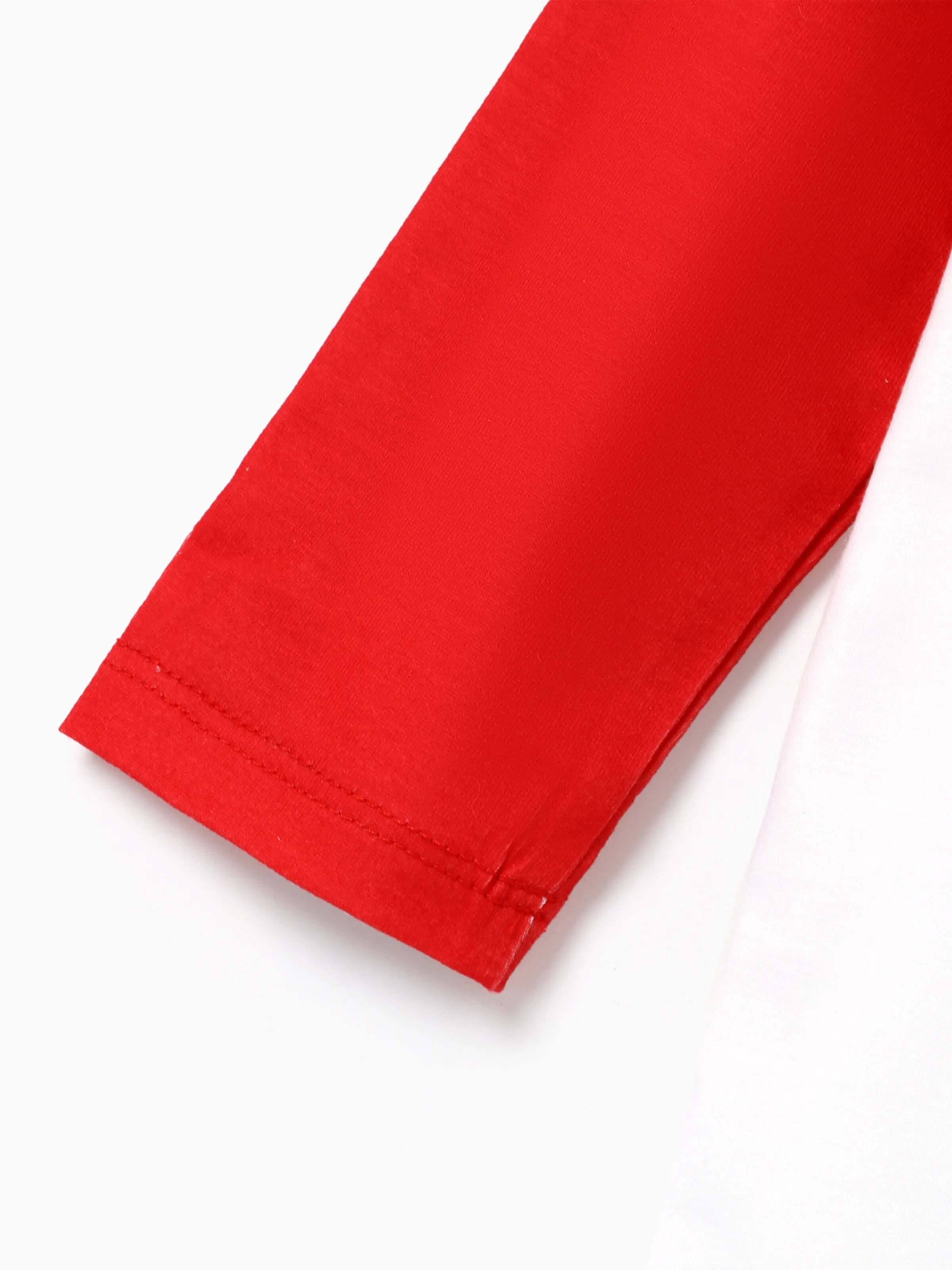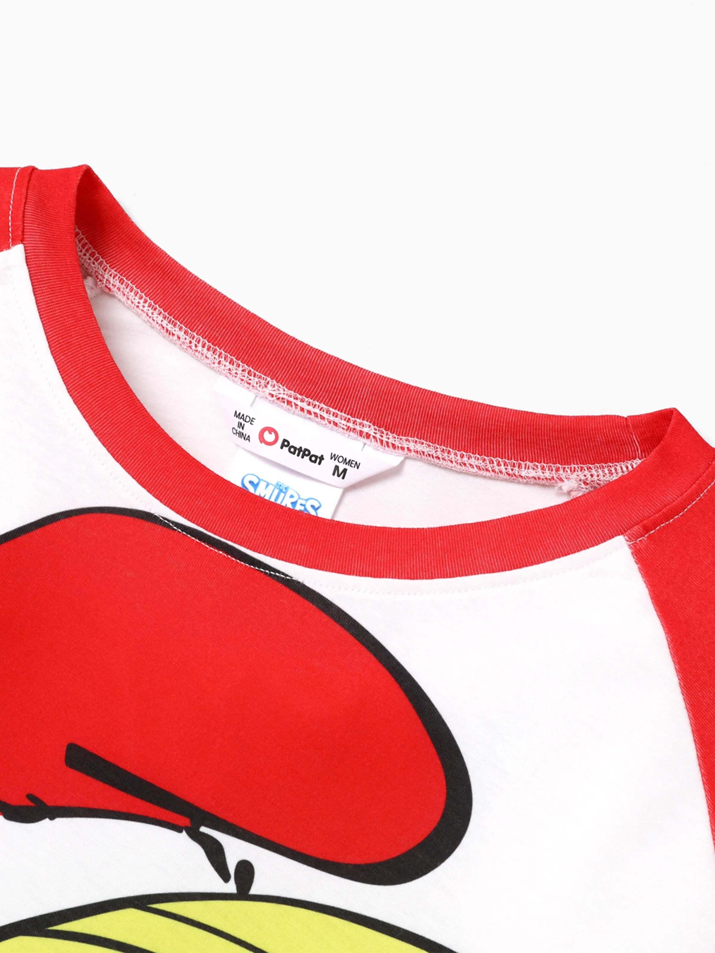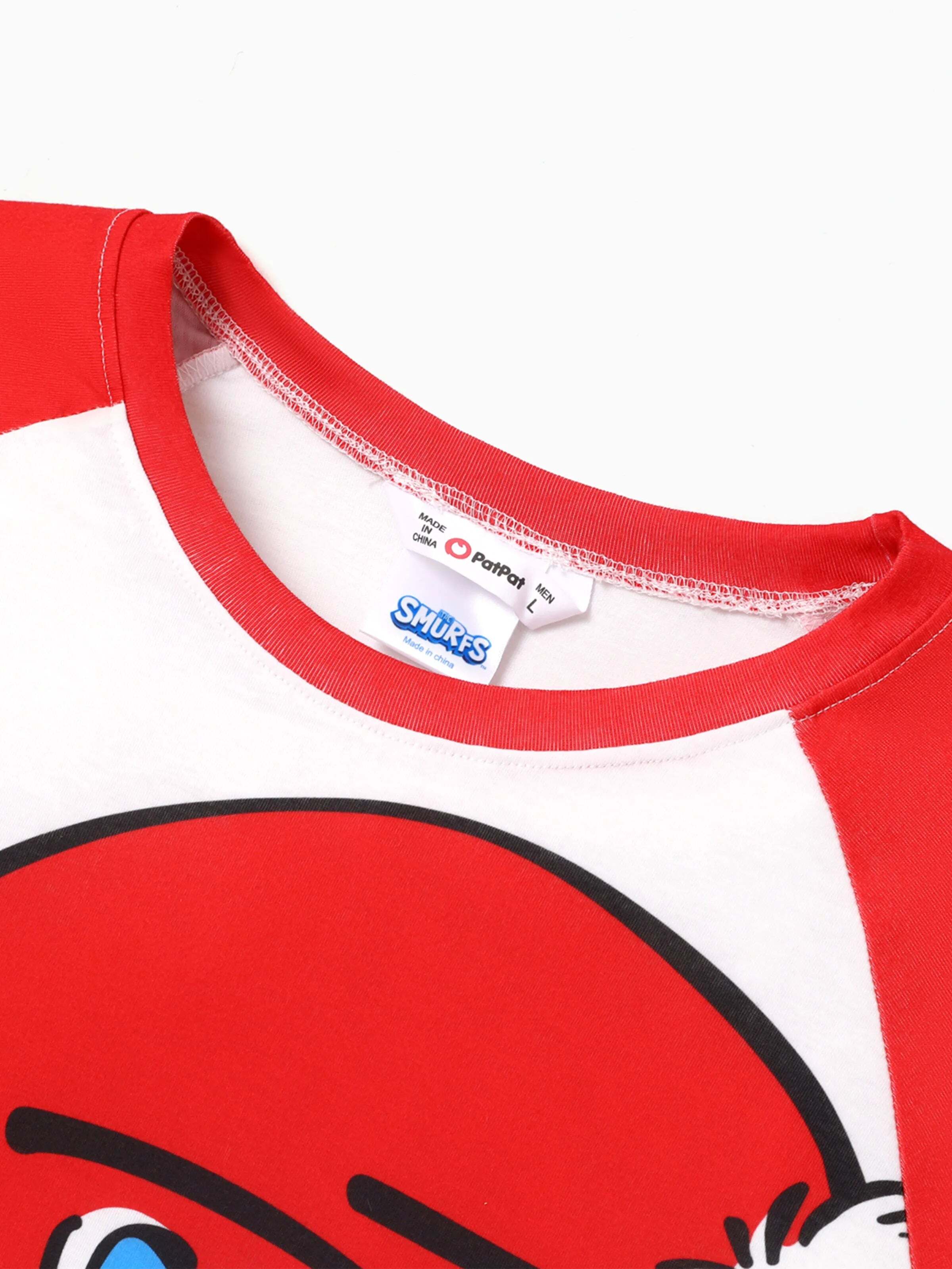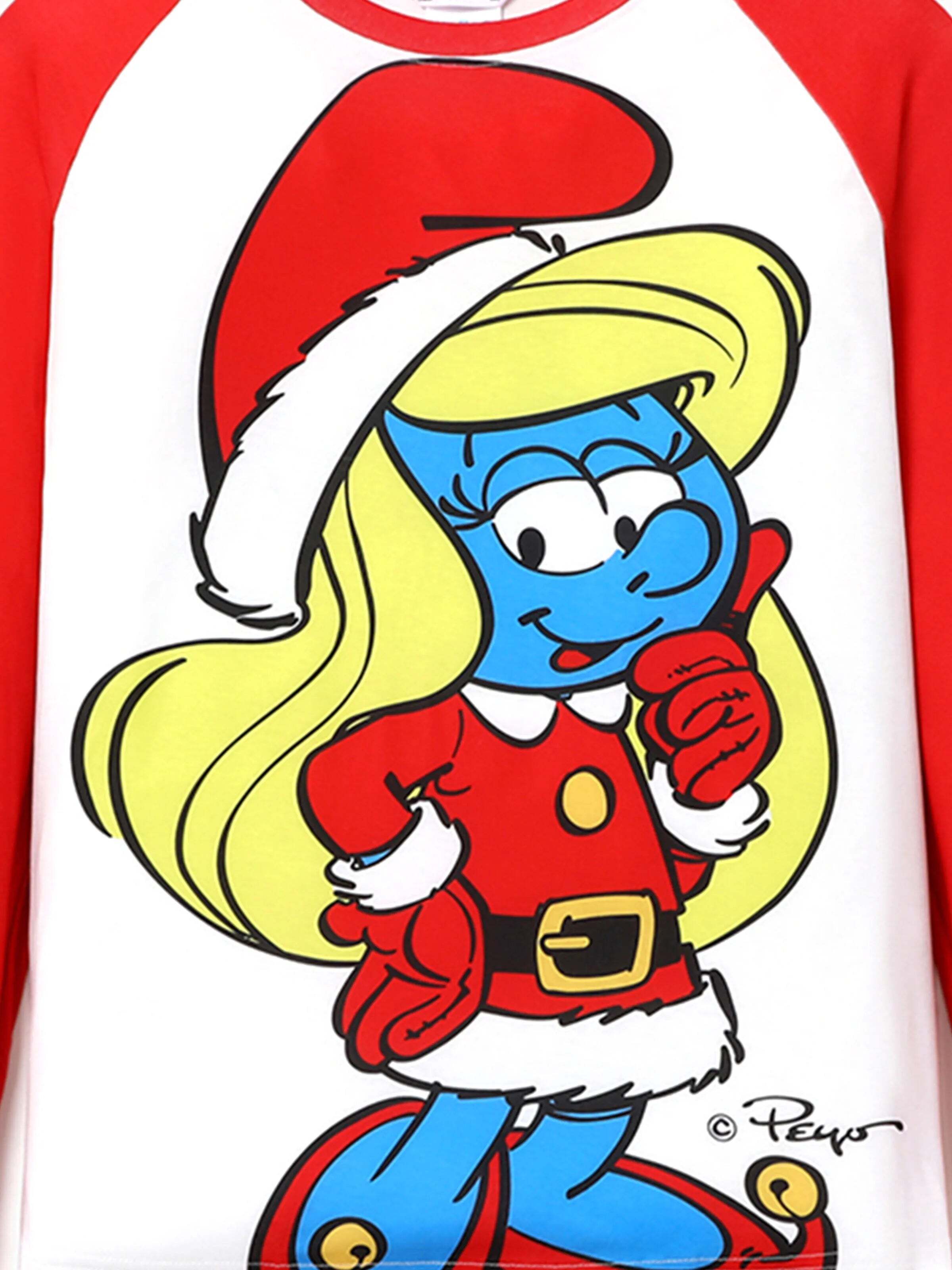 This The Smurfs™ Christmas pajama set features iconic Smurf characters in festive holiday designs. The red and white color-block tops with Smurf graphics are paired with holiday-themed patterned pants, perfect for family moments and holiday photos. Available for adults, kids, and babies.