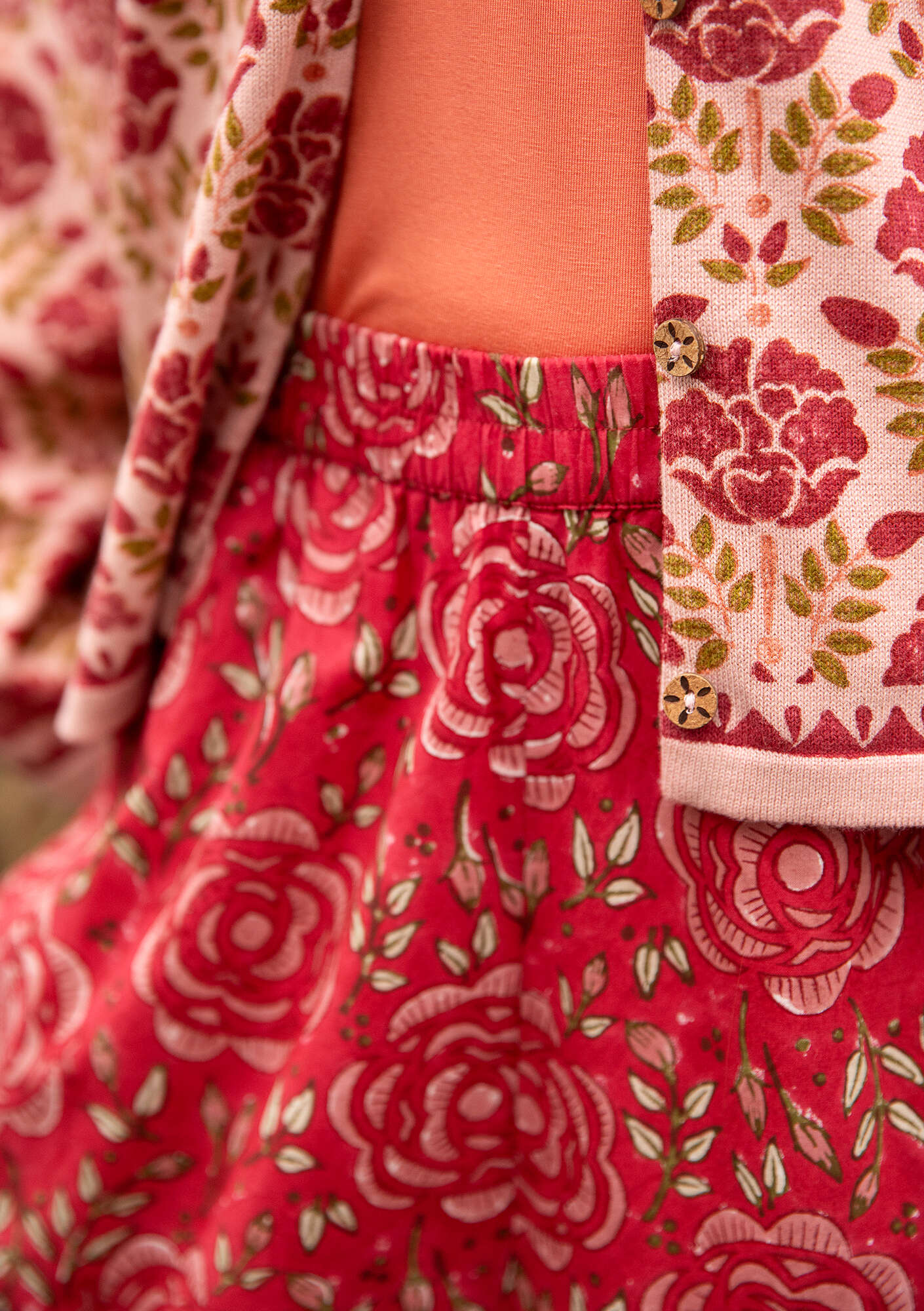 • 100% cotton. The cotton is certified organic. The garment is block-printed by hand. Delicate wash at 30°. Iron on medium heat. 2-3% shrinkage. Made in Bagru, India.