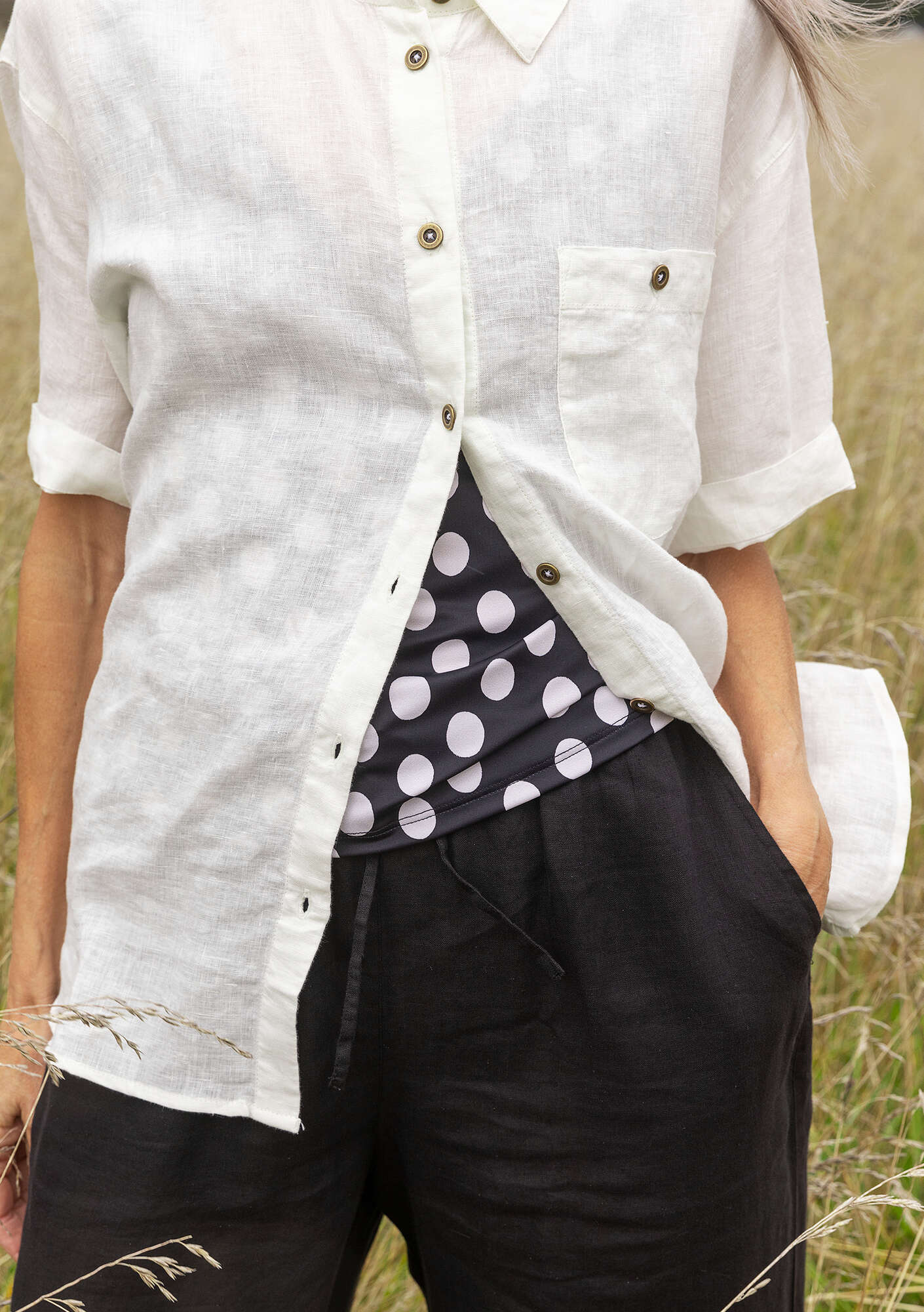 • 100% linen. The linen is made from dew-retted flax. Dew-retting is a natural process that uses minimal water, no chemicals, and lets the sun and dew do the work. Every stage of the manufacturing chain is certified. Delicate wash at 40°. Iron on medium heat. 2-3% shrinkage. Made in Kundli, India.