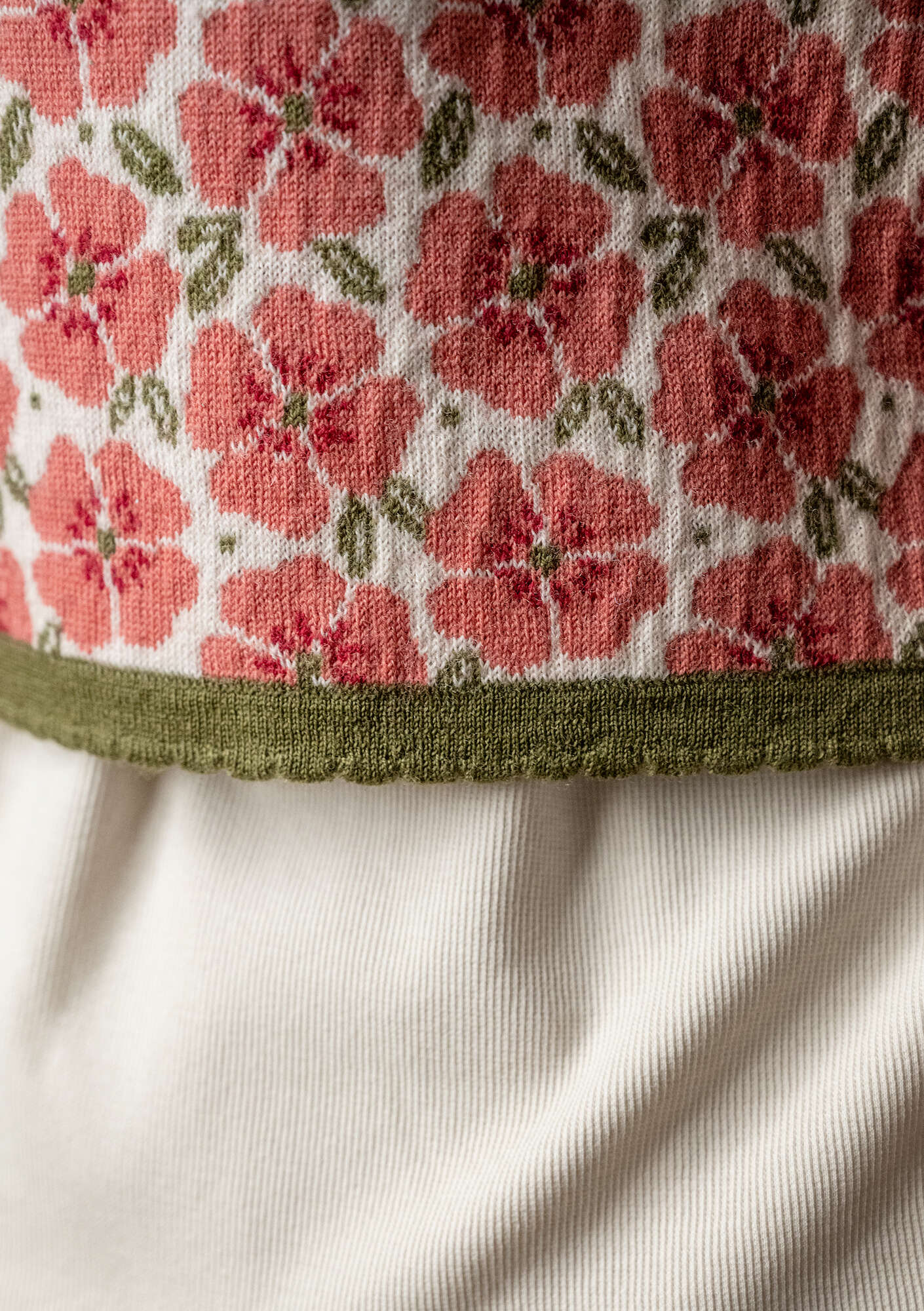 - Jacquard-knit cardigan in soft merino wool. Folk costume-inspired style, with full-length sleeves and contrasting knit finishes. Round neckline with hand-crocheted edge. Beautifully patterned with flowers and decorative borders. Closes with round ornamental buttons and crocheted loops.