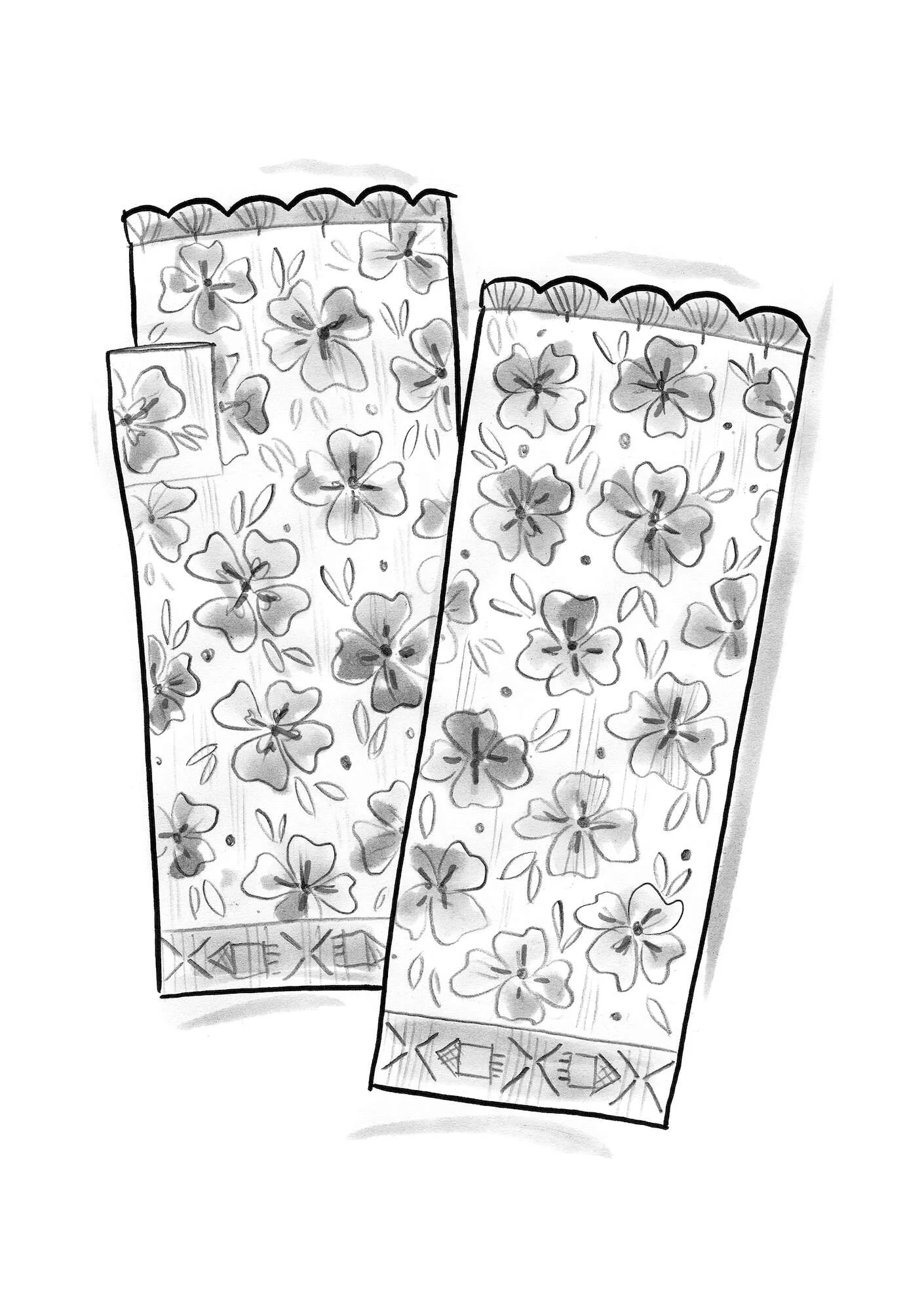 - Jacquard-knit fingerless gloves in merino wool with hand-crocheted trim. Style with thumb and a beautiful border at the cuff.