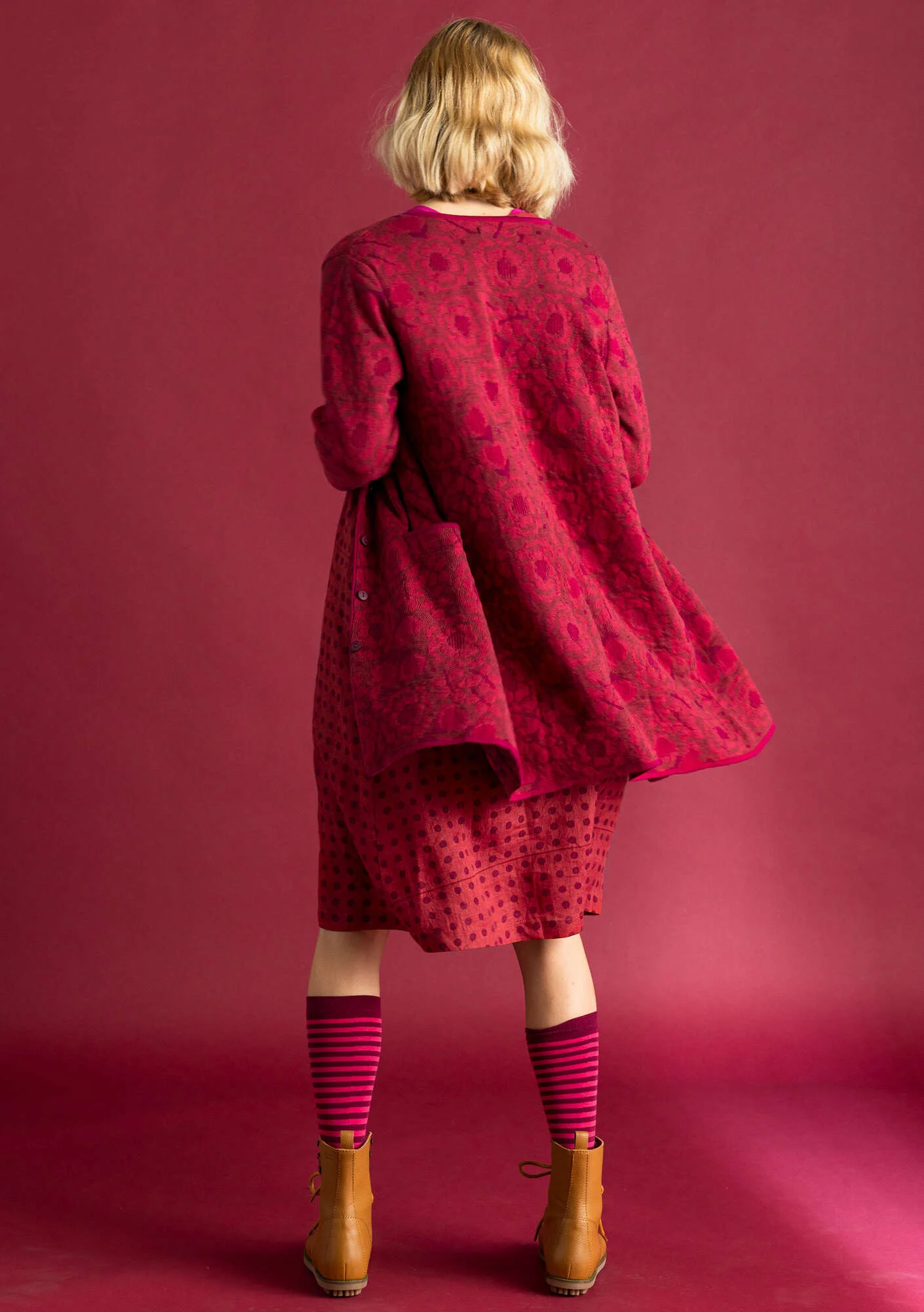 - Jacquard knit with full-length sleeves. The rose pattern adds a special touch to the discreet, almost monochrome, design. Practical pockets on the front.