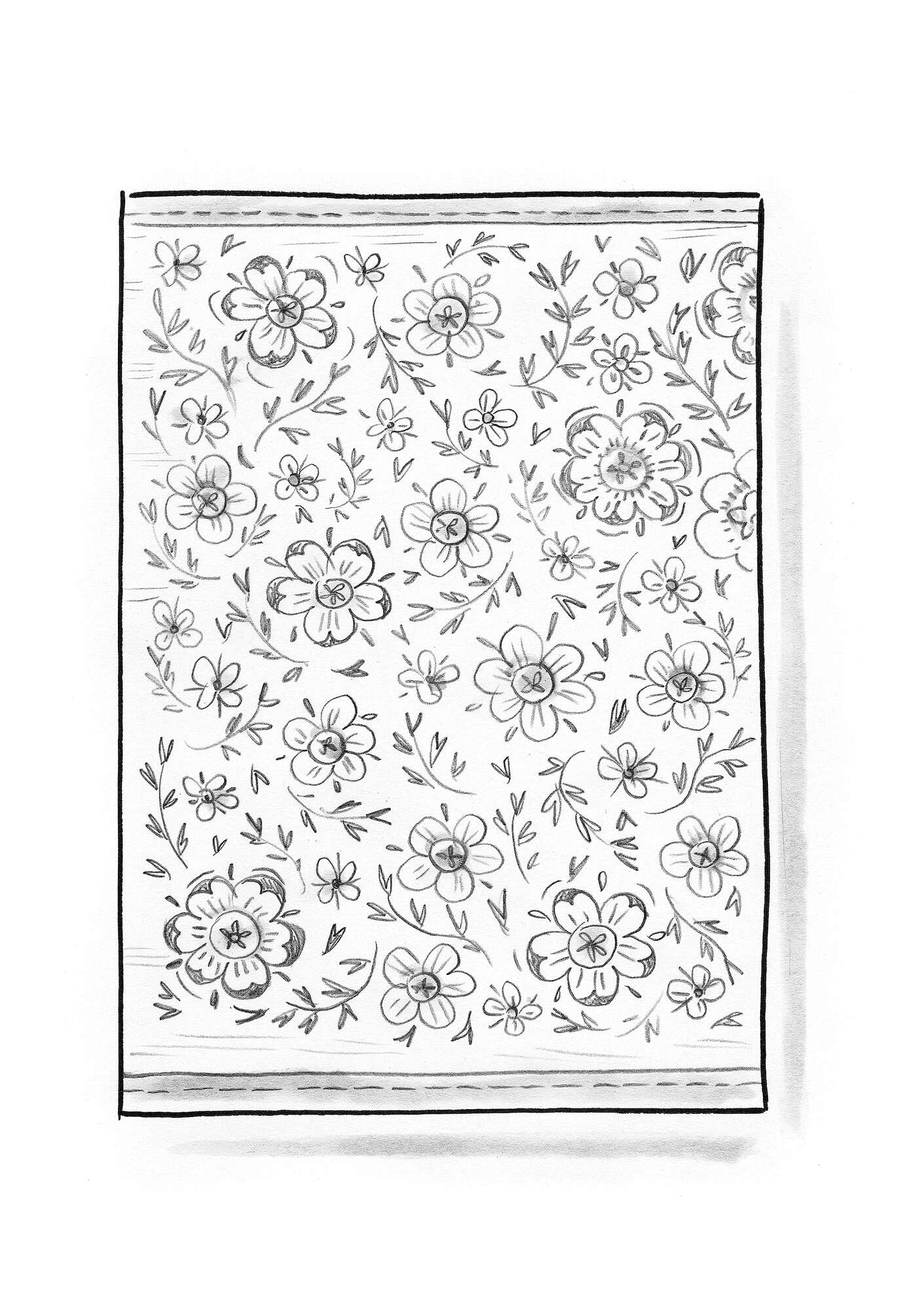 - Rug with printed floral pattern.