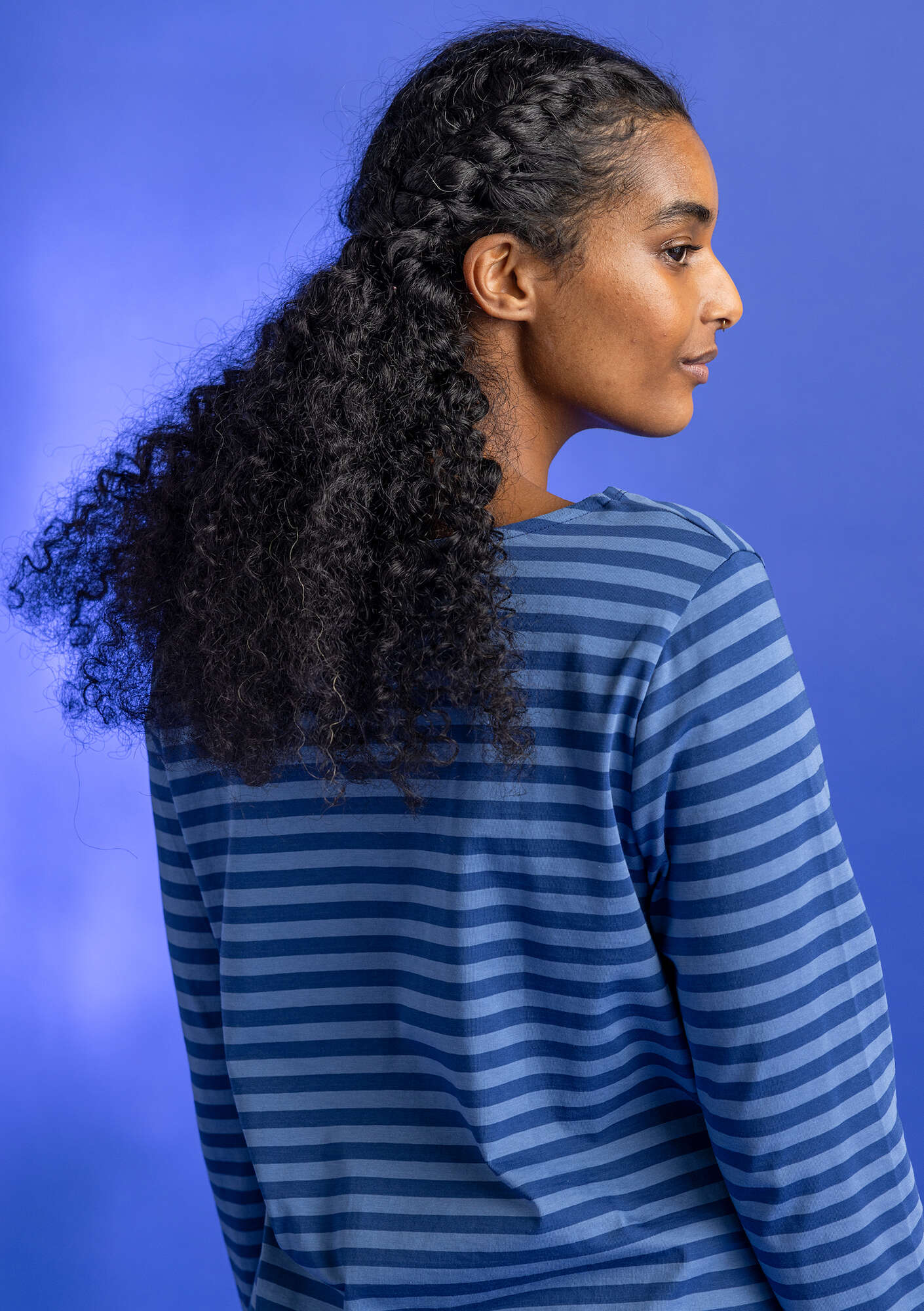 - Yarn-dyed stripes in a simple style with full-length sleeves. Subtle boatneck with simple double stitching all the way around.