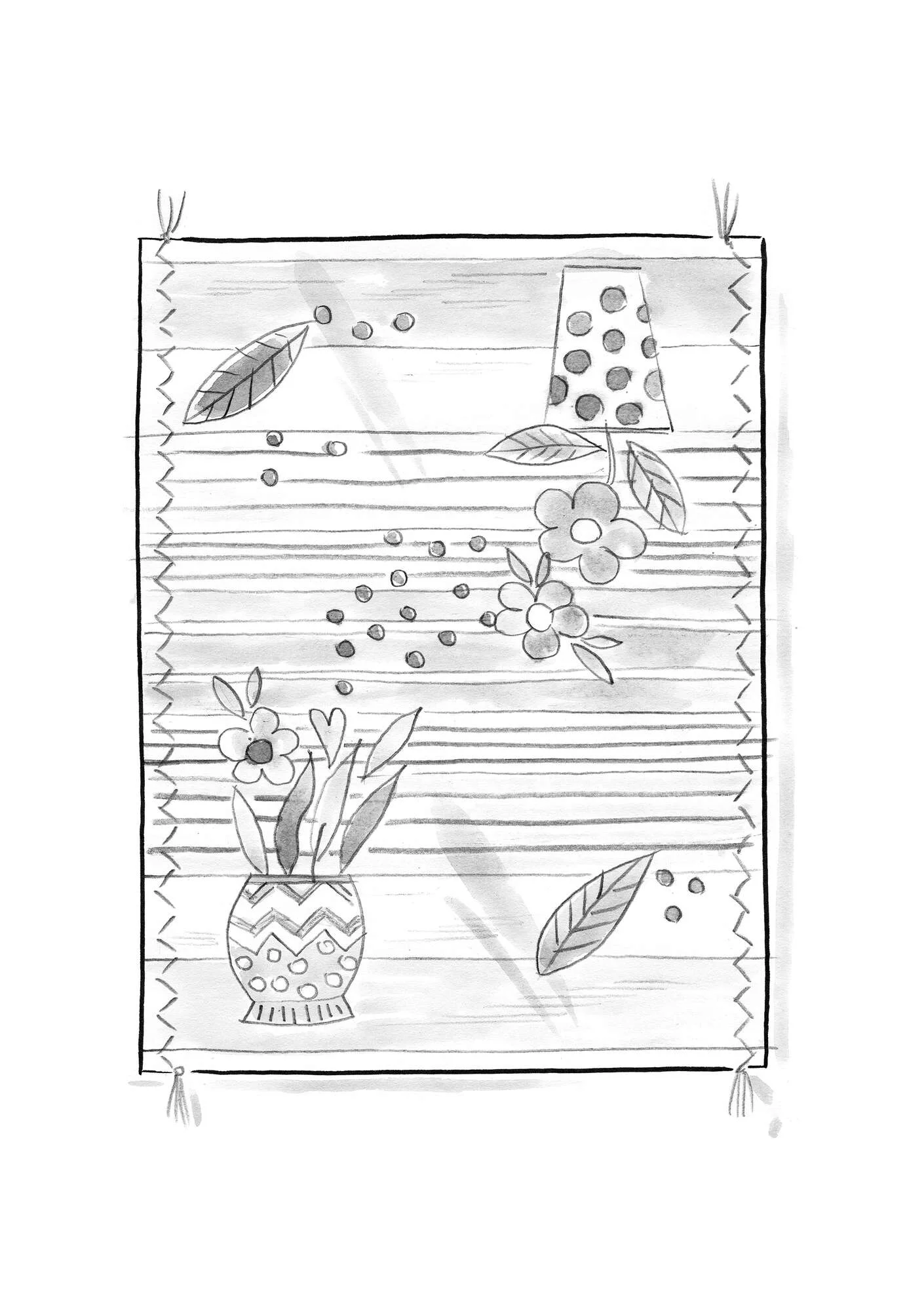 - Woven rug with yarn-dyed stripes in organic cotton, decorated with embroidered flowers in pots.