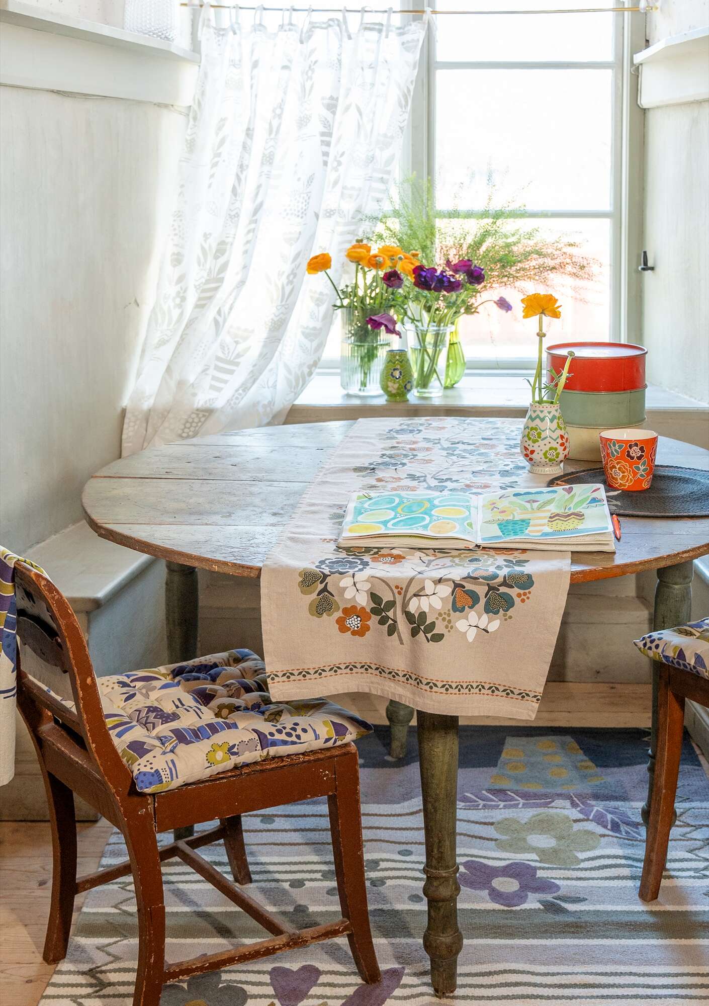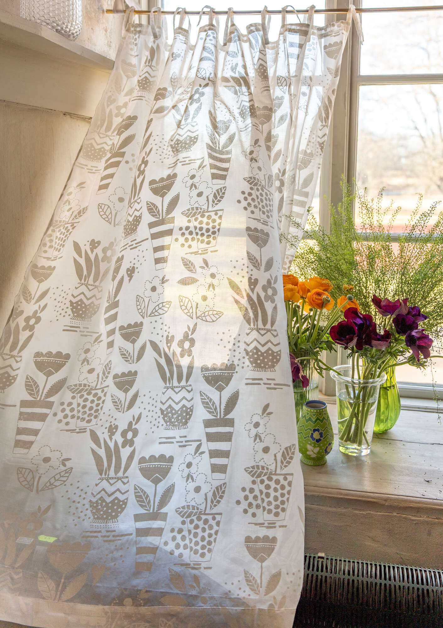 - Crafted from organic cotton voile with a printed design. Ribbon tie-ups for hanging on the curtain rod. Sold individually.