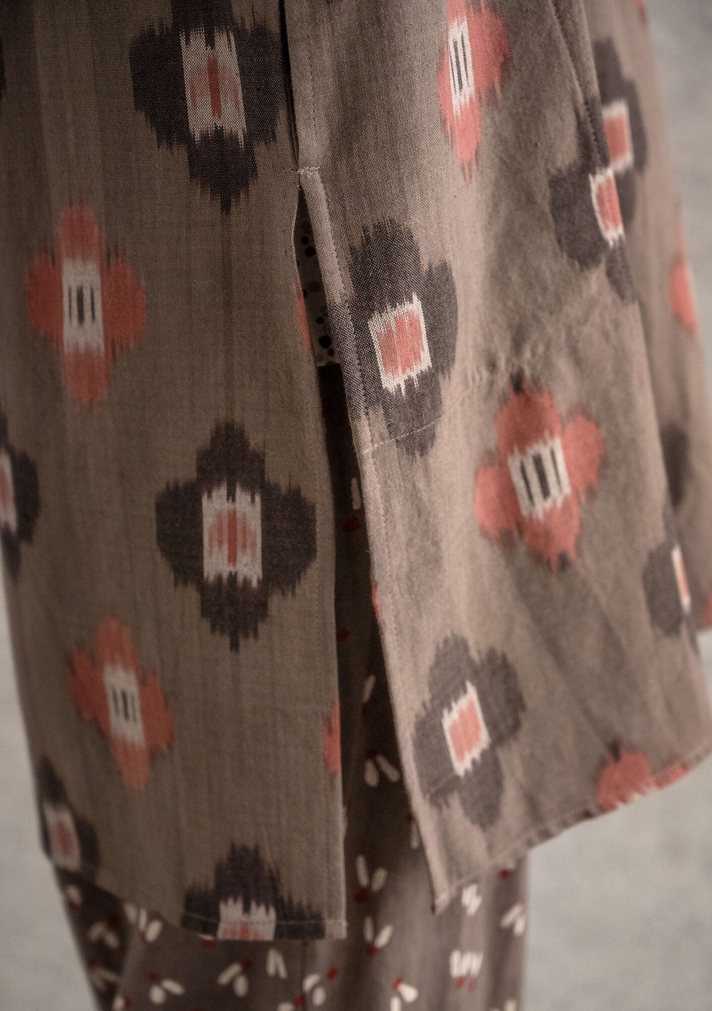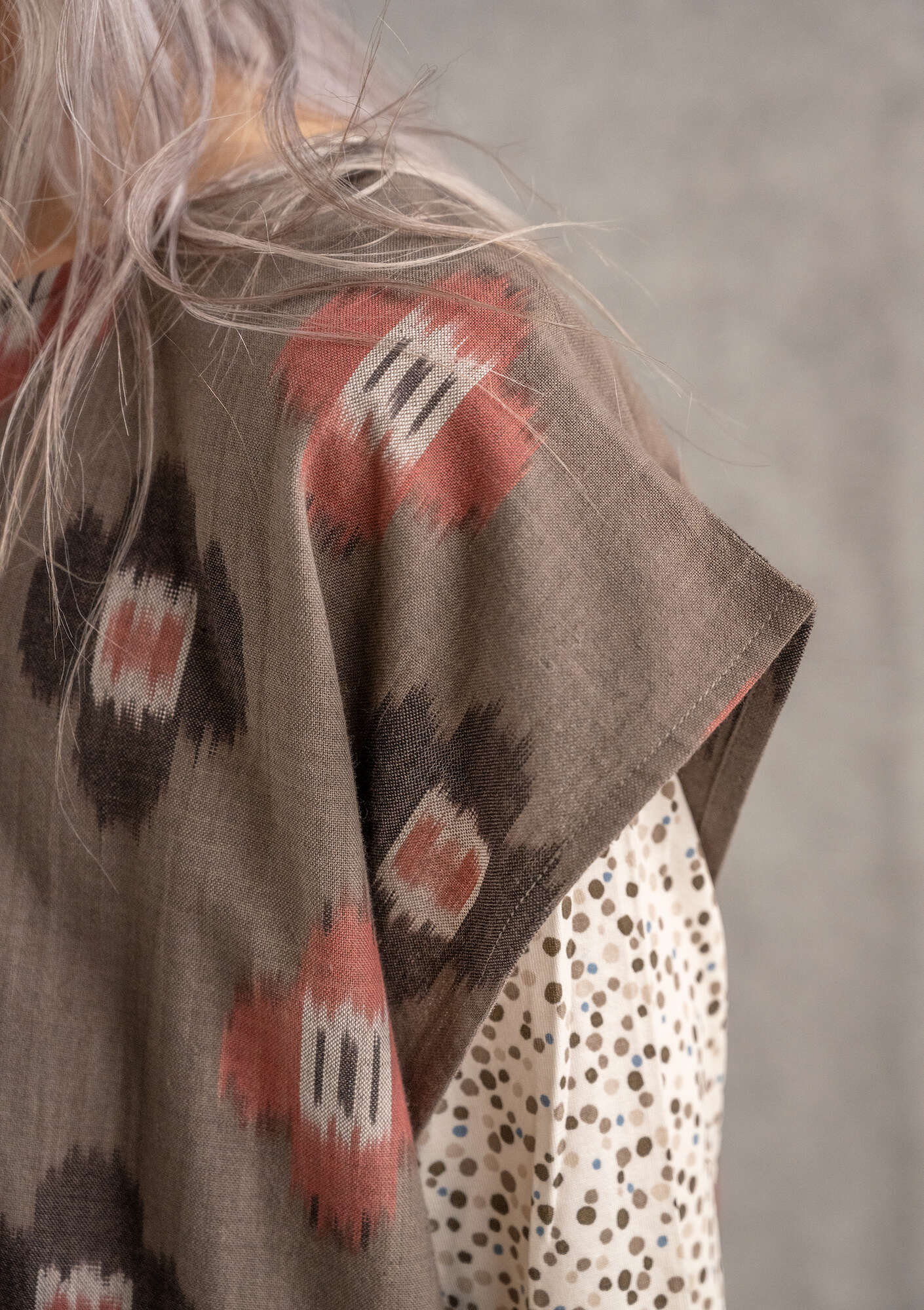 - Ikat-woven tunic in a straight cut with cap sleeves and high side slits. Round neckline and rectangular side pockets.