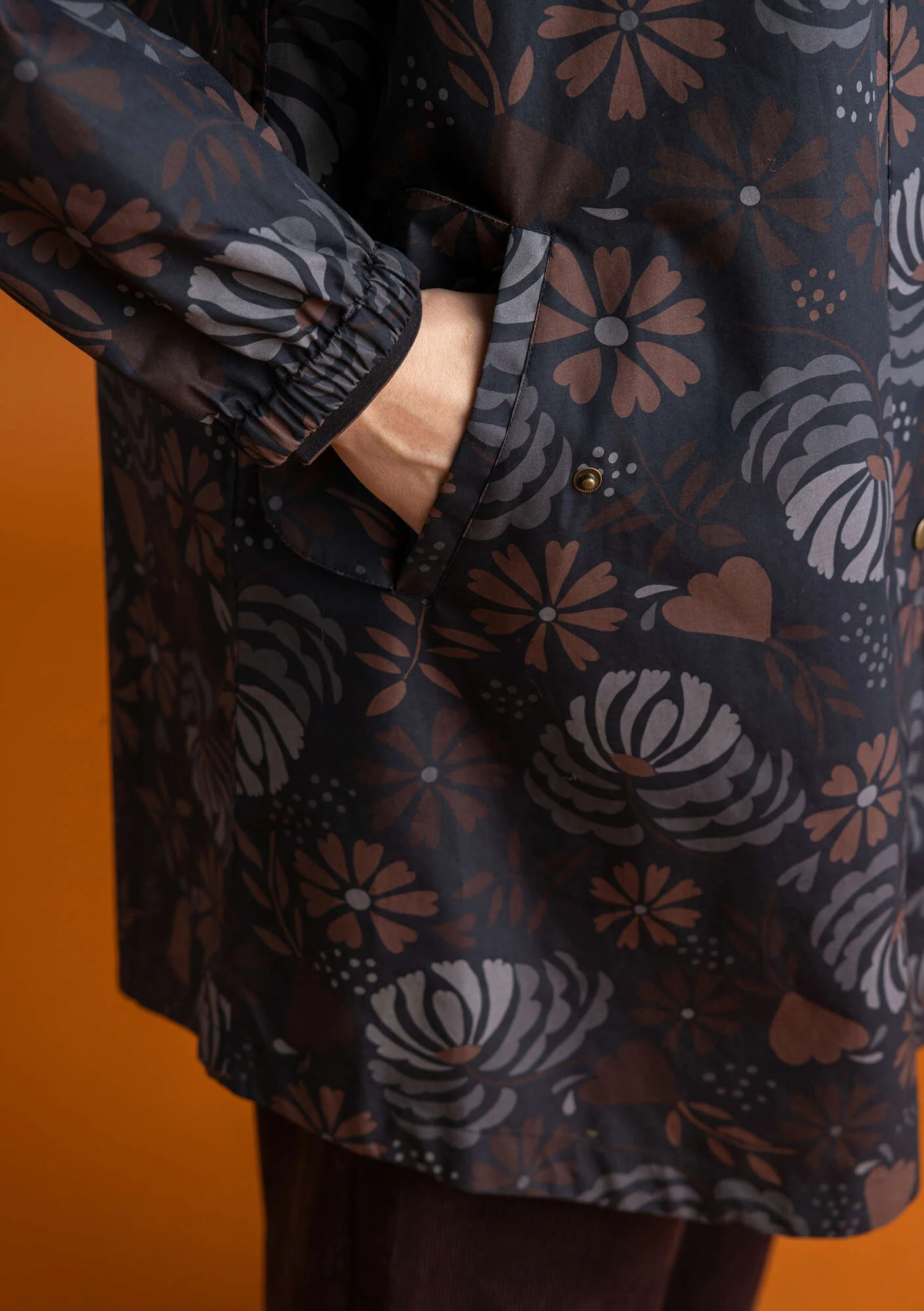 - Woven organic cotton: 100% cotton. The cotton fibres are certified organic. The fabric has a polyurethane coating on the inside and has been treated with a fluorine-free impregnation called Bionic Finish Eco. This fabric finish has a waterproof rating of 10,000 mm, and breathability rating of 3,000 g/m2/24h. The garment has taped seams. Delicate wash at 40u00b0. Do not iron. Do not dry clean. 2-3% shrinkage. Made in Zhejiang, China.