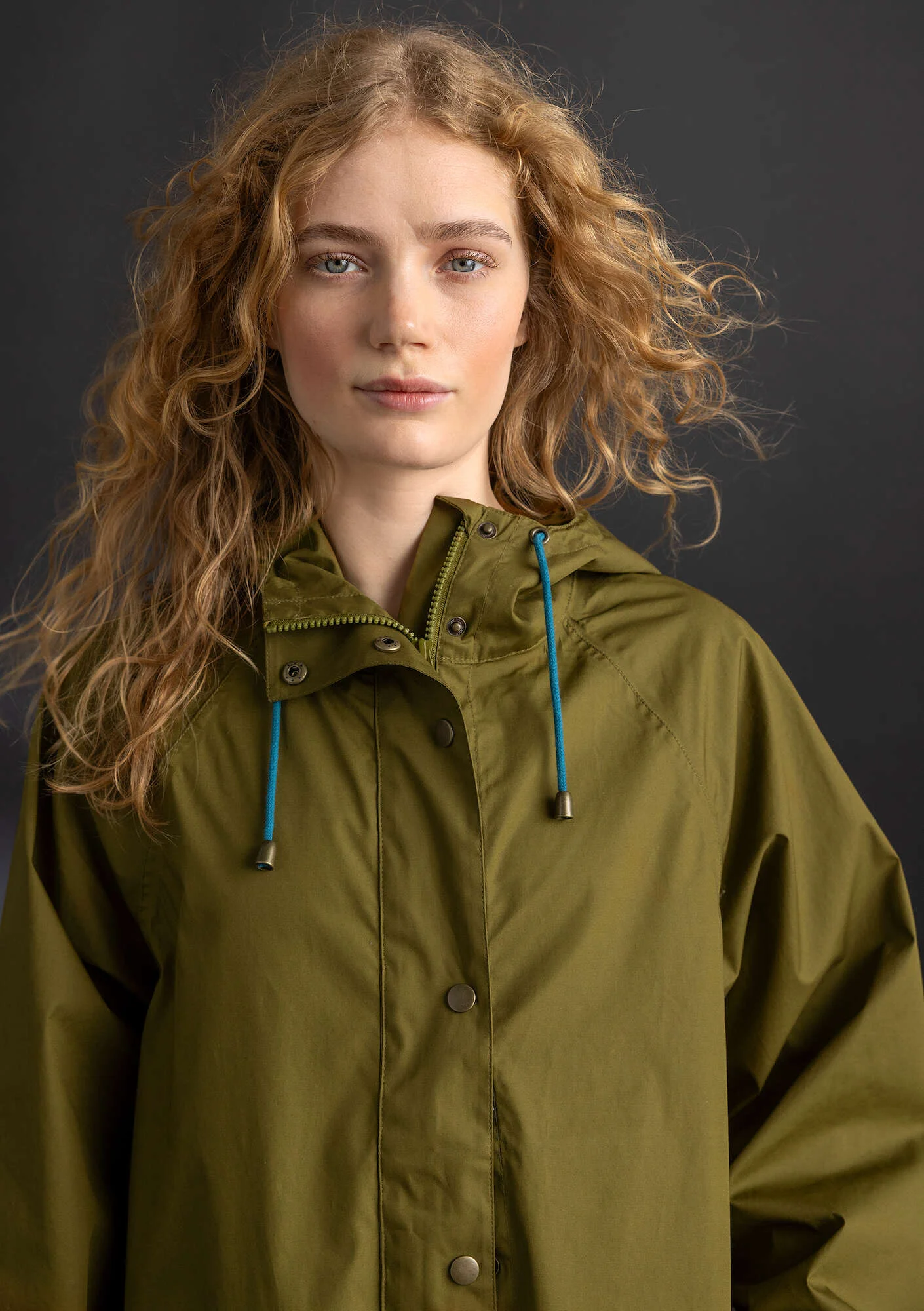 - A-line silhouette with raglan sleeves. Drawstring hood and practical elasticated cuffs. Front flap pockets. Concealed mesh vent on the back for breathability. Waterproof with taped seams.