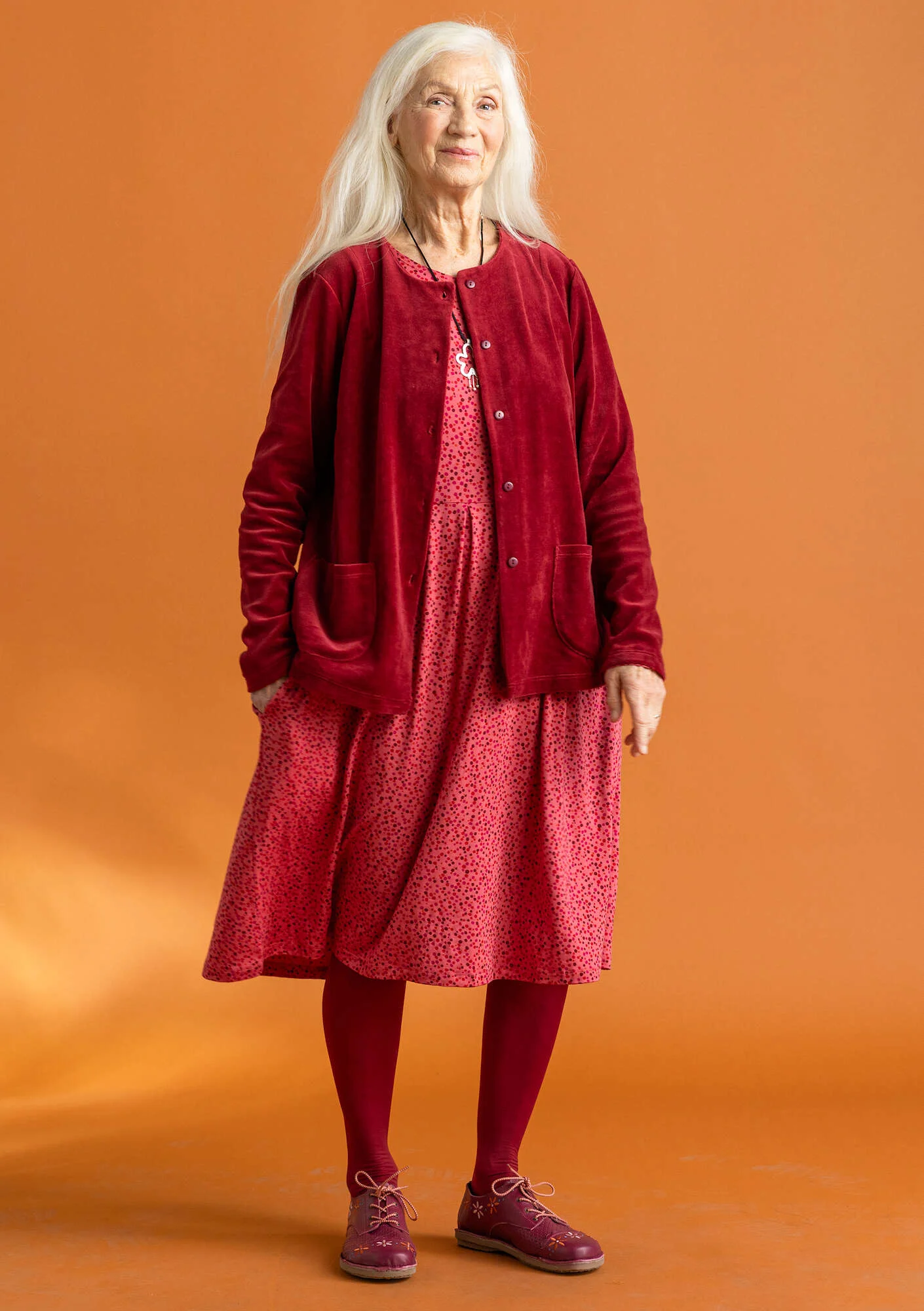 Fit Figure-fit, but generous fit over the hips Length: M 100 cm 1/2 Bust: 48 cm 1/2 Hem width: 86 cm Sleeve length from centre back: 77 cm