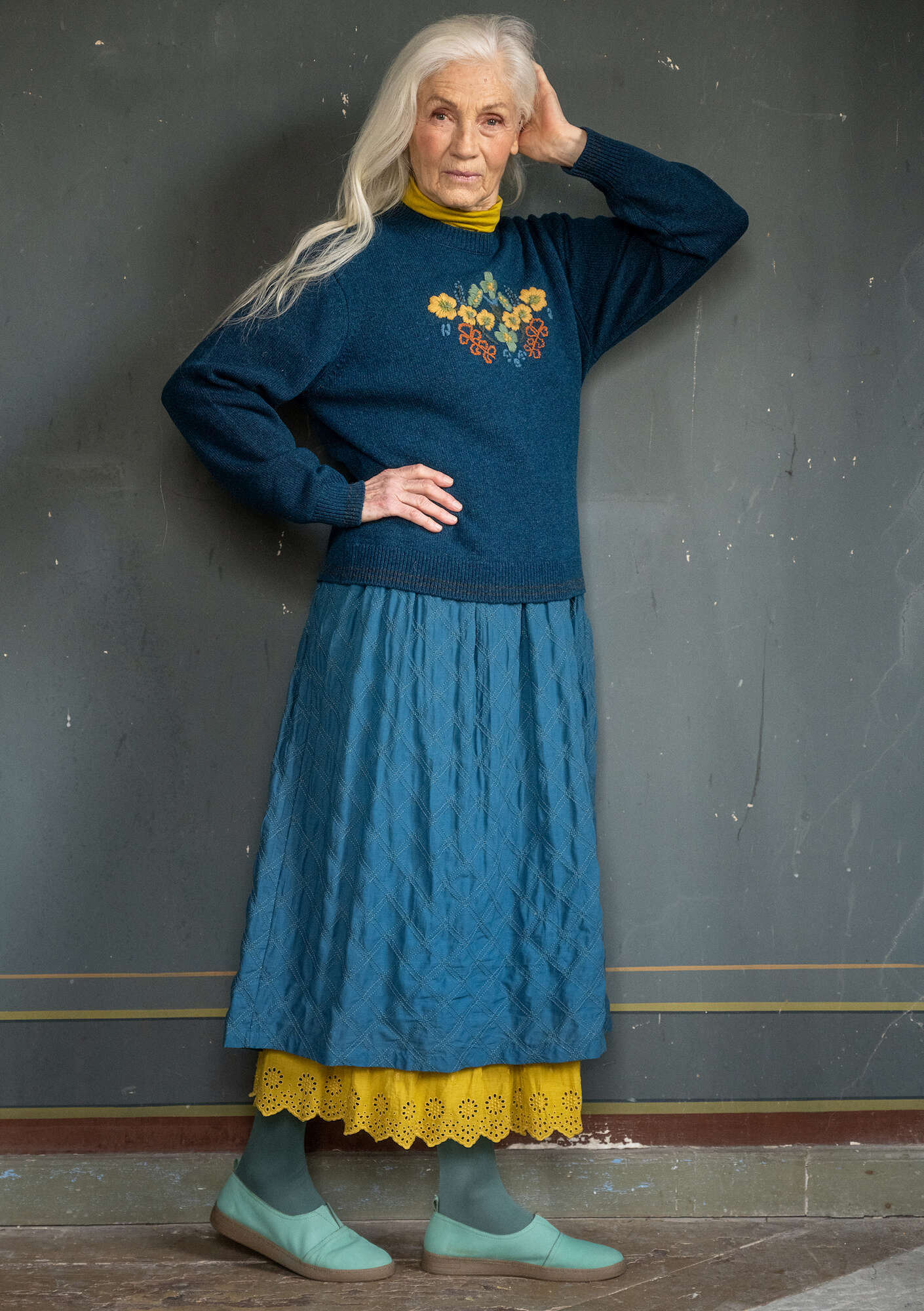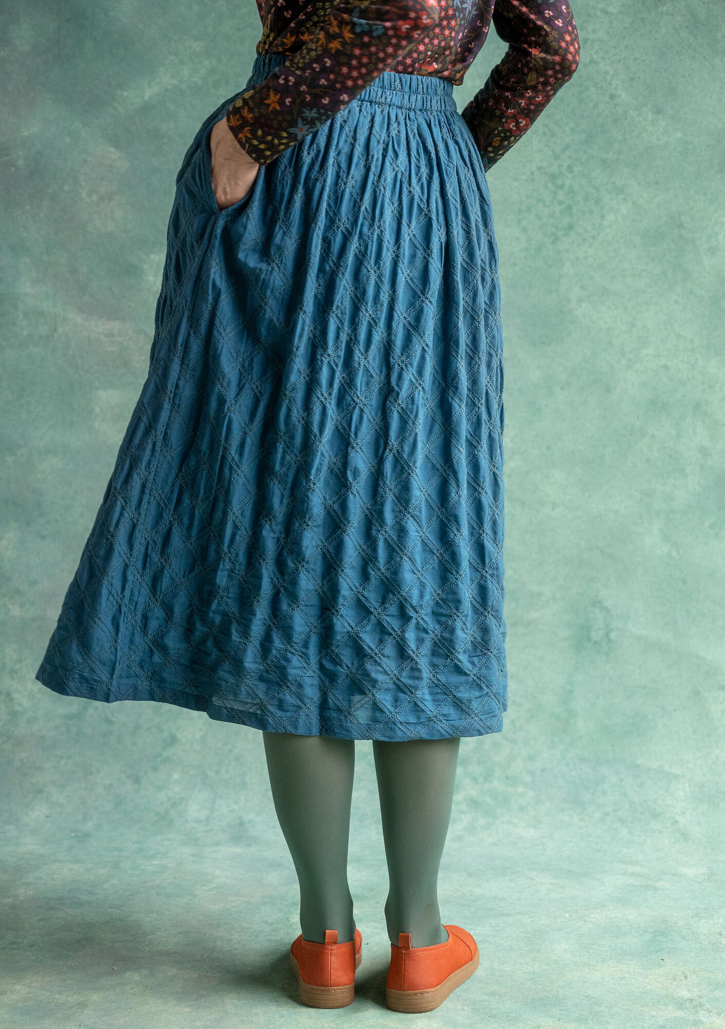 - Skirt with allover embroidery and a beautiful tone-on-tone checked pattern. Concealed elastic waist and practical side pockets.