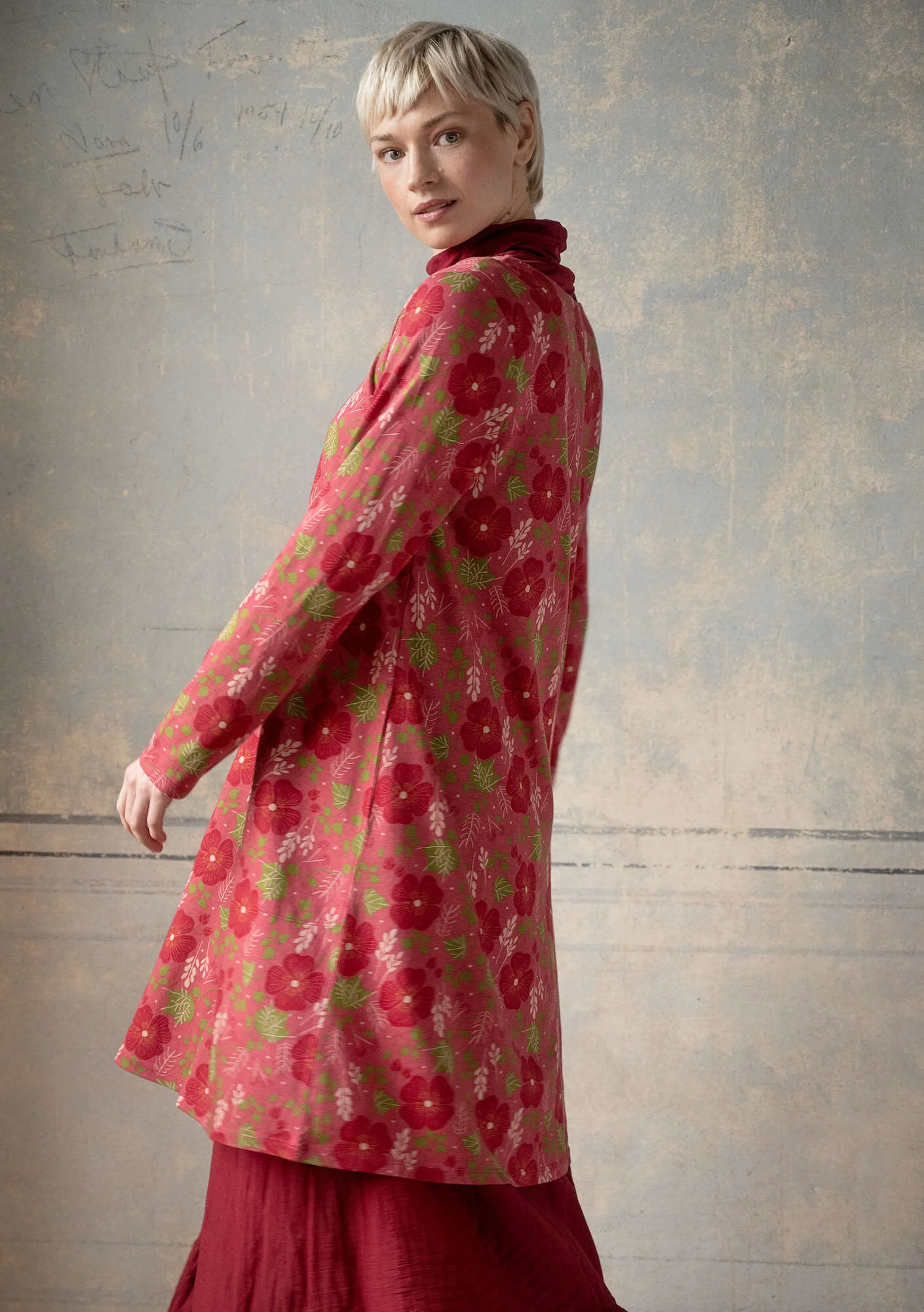 - This printed jersey dress makes the ideal layering piece with its popular, gentle A-line silhouette. Full-length sleeves, round neck and comfortable side pockets.
