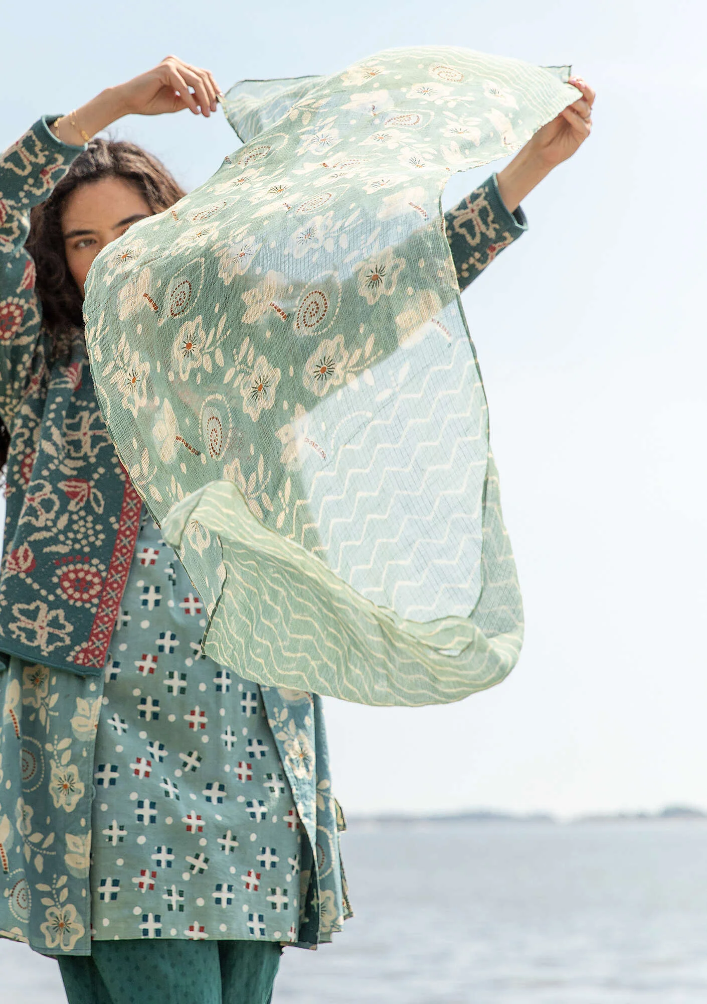 • Gorgeous flowing shawl crafted from a delightful blend of cotton and silk. Block printed with a mud resist technique and dyed with plant materials, it is a showcase of craftsmanship. Rectangular. Perfect for both casual and festive occasions.