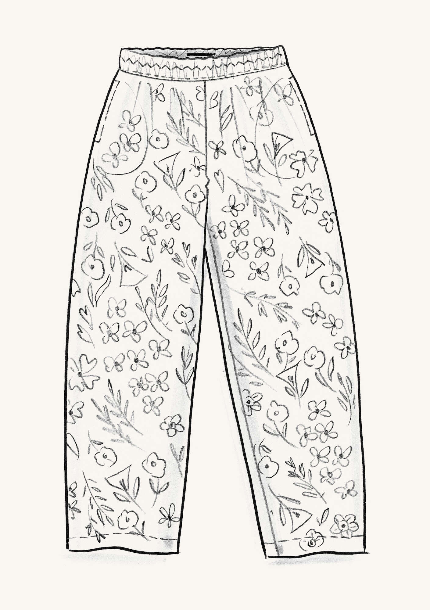 - 63% linen/37% modal. The linen is dew-retted, a natural, eco-friendly process in which the sun and dew handle the work without chemicals and with minimal water use. TENCELu2122 Modal is made from certified forests using a closed-loop system and it is an excellent environmental choice. Colorway 04 is digitally printed, which is the most environmentally friendly printing method. The entire production chain is certified to be environmentally friendly. Machine wash warm, delicate cycle. Medium iron. Shrinkage 2-3%. Made in Delhi, India.