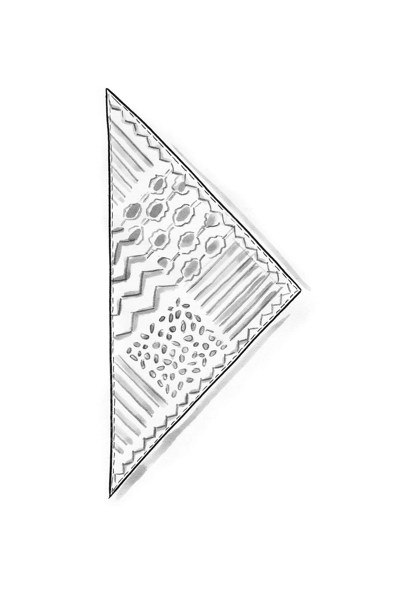- Artisanal block-printed scarf in a triangular style that is easy to tie around the neck.
