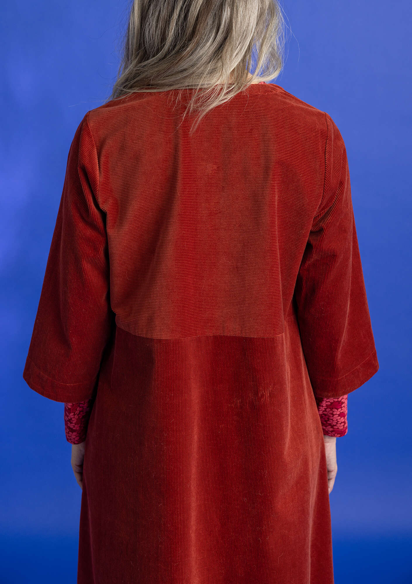 - Button-through style with three-quarter sleeves. Practical side pockets and dyed, recycled polyamide buttons. Can be worn as both a dress and a light coat.
