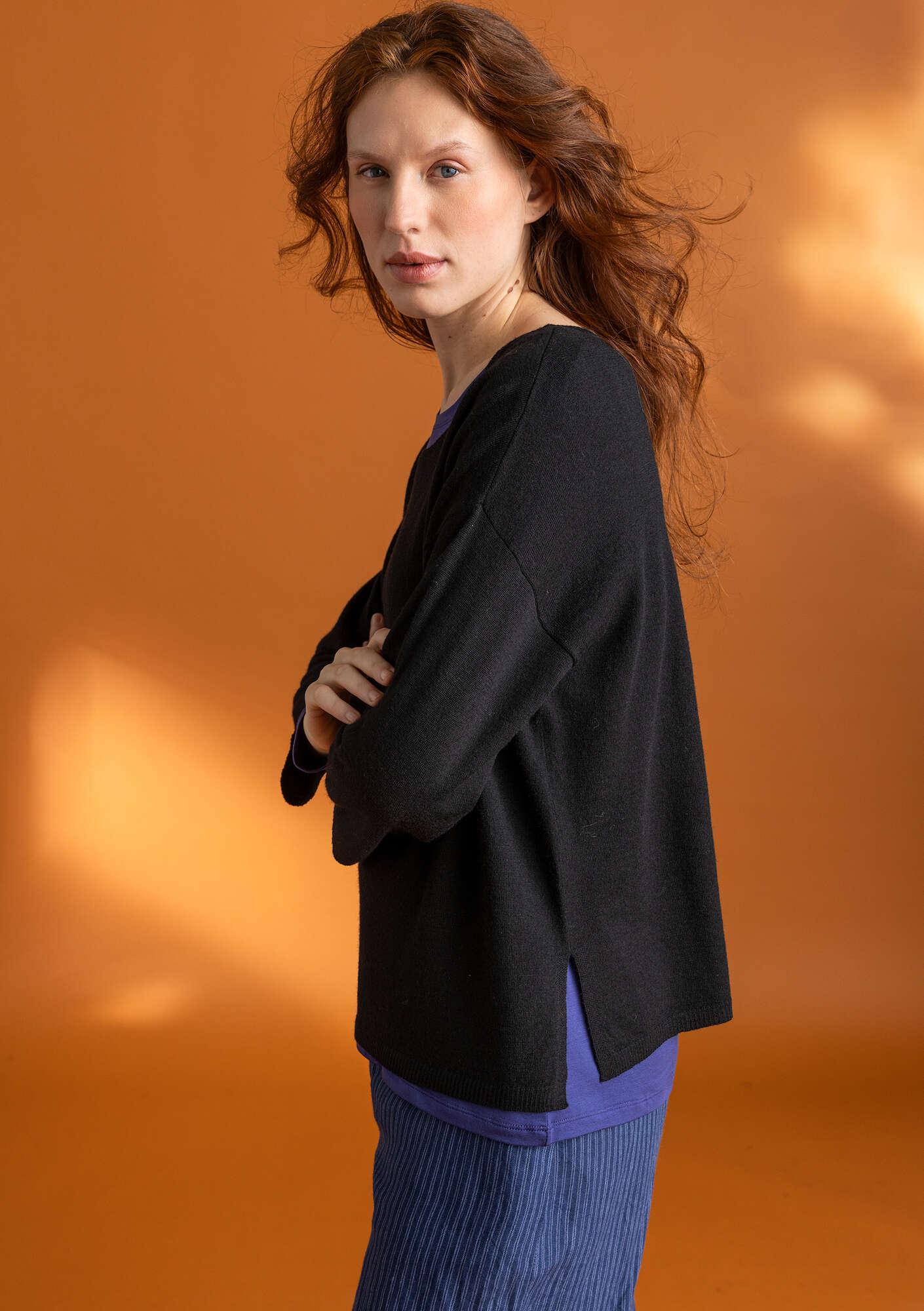 - Featuring three-quarter drop sleeves. The neck, cuffs and hem are trimmed with a fine rib knit edging. Neat side slits. Casual style for every occasion.
